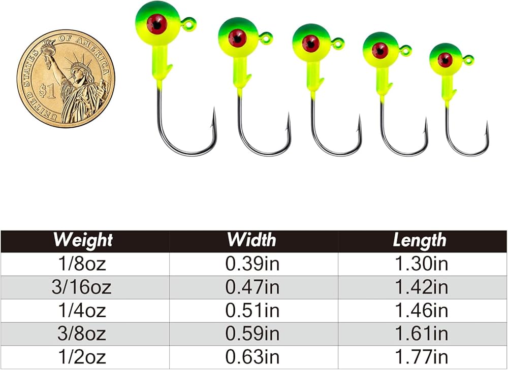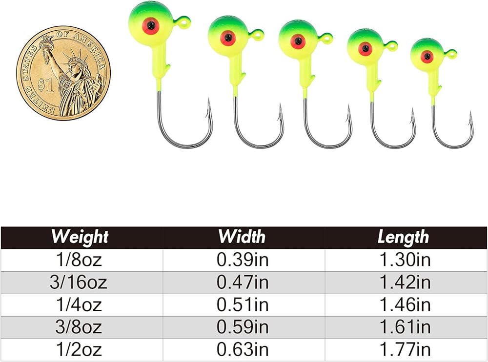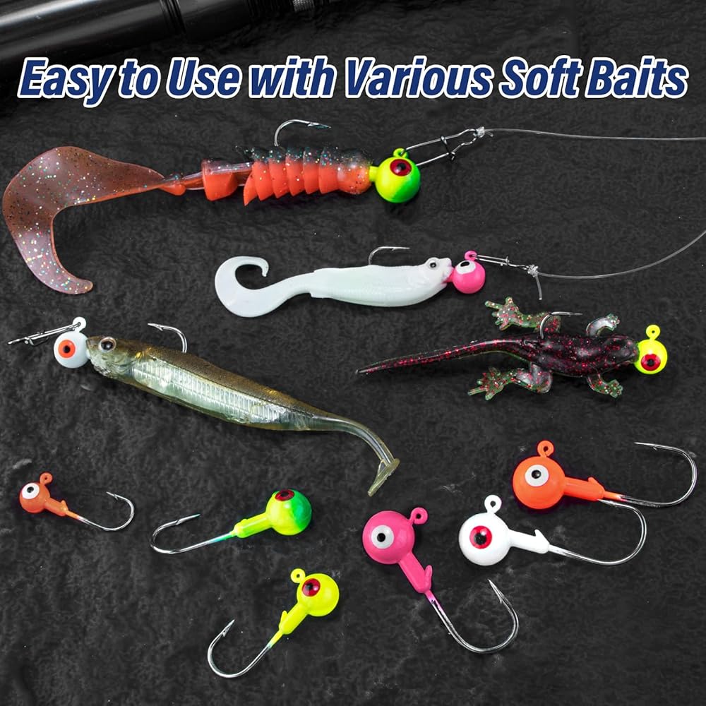【Strong Hook】 The hook of fishing round jig head is made of quality carbon steel, which is hard to deform and has strong penetration force.