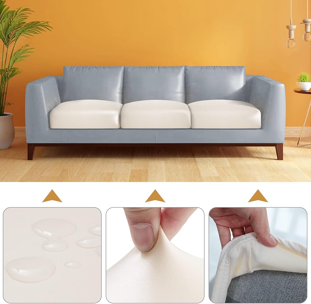 【DURABLE & ELASTIC】 : This faux leather couch cover are made of 100% PU, which is very durable, waterproof, soft and elastic, without wrinkles. This sofa cushion covers can effectively protect your furniture from pet hair, spills, and stays, it is perfect for household use.
