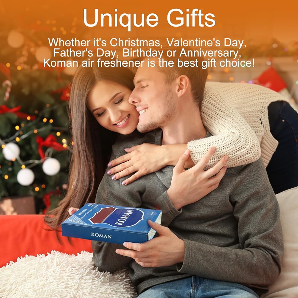 【Great Gifts for Any Occasion】KOMAN new car scent car freshener is the perfect gift for many events, whether it's christmas season, thanksgiving day, birthday, valentine's day, mother's day, anniversaries, etc. It is also a perfect gift for your friends and family. Our new car smell car freshener is a wonderful present to delight your loved one.