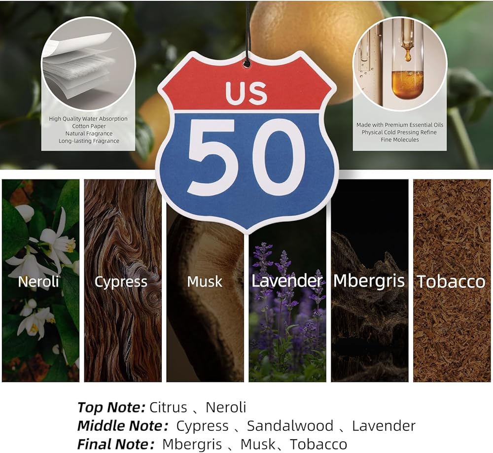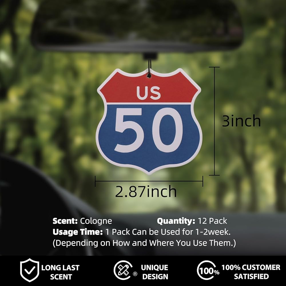 【Unique Design】KOMAN car air fresheners design inspired by US highways. The car air freshener's unique and novel appearance design style, trendy, fun, and cute, leaves a deep impression on your friends and family. Individually packaged, easy to carry. The car scents air freshener also looks good as room and car decor.