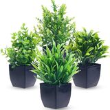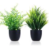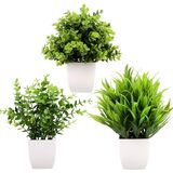 All-Powerful Decoration-3 Mini Fake Plants, 1 wheat grass leaf and 2 eucalyptus leaf potted plants, lush and realistic.Vibrant fake Plants are paired with black pots, which are simple yet elegant. It can be a good choice when you don't know whether the product you choose will match the environment in your home.