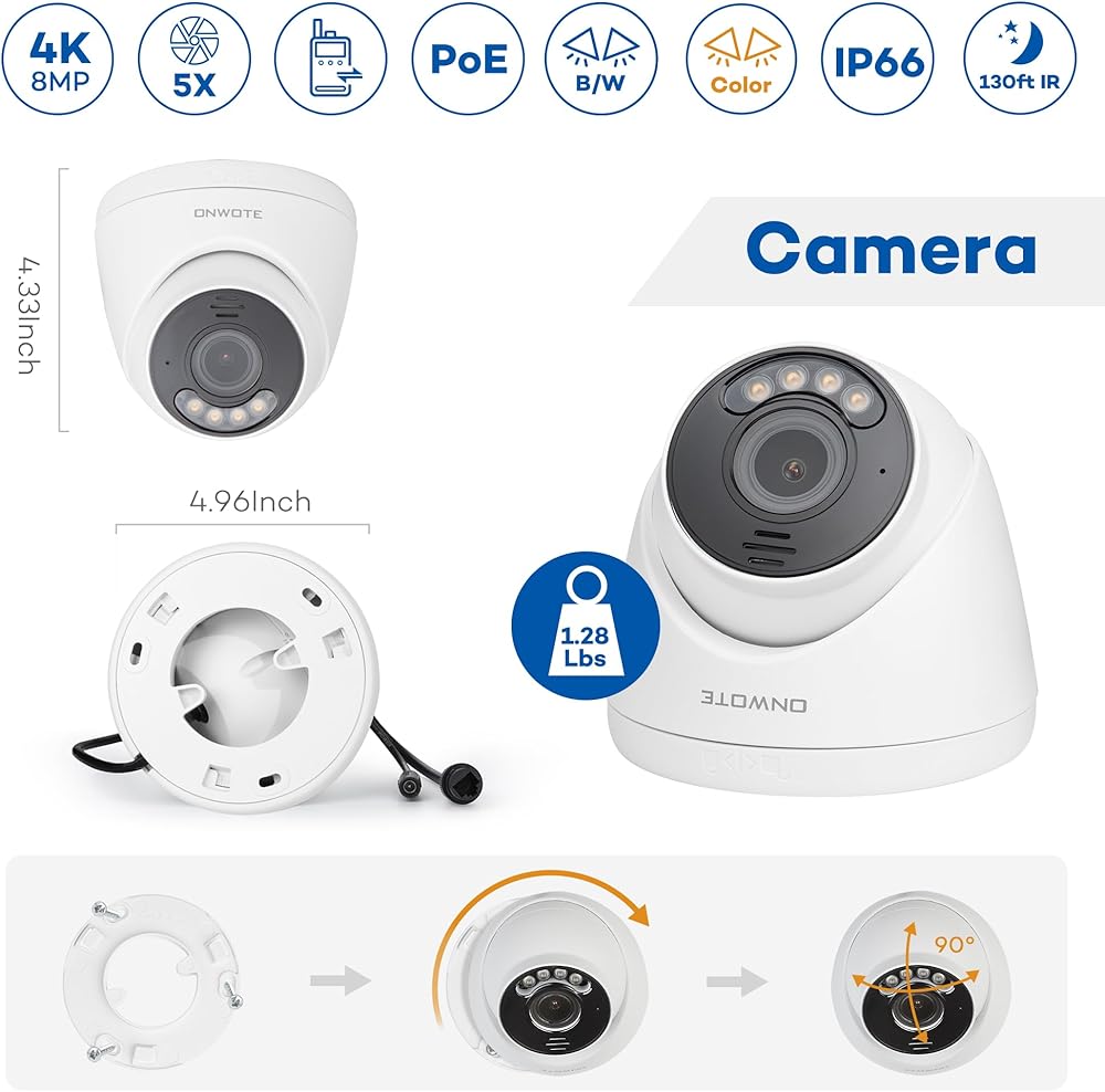 ONWOTE 5X Optical Zoom 4K 8MP PoE Security Camera, 2.7-13.5mm Motorized Varifocal Lens, Auto Focus, 2 Way Audio, AI Detection Trigger Color Night Vision, Outdoor Commercial Wired Camera for Business