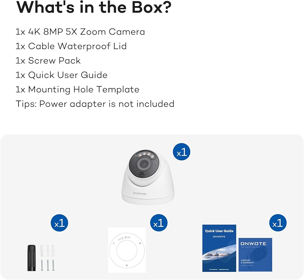 4K 8MP Ultra HD- 3840x2160 8 megapixels. 2 Way Talk- Built in microphone and speaker.