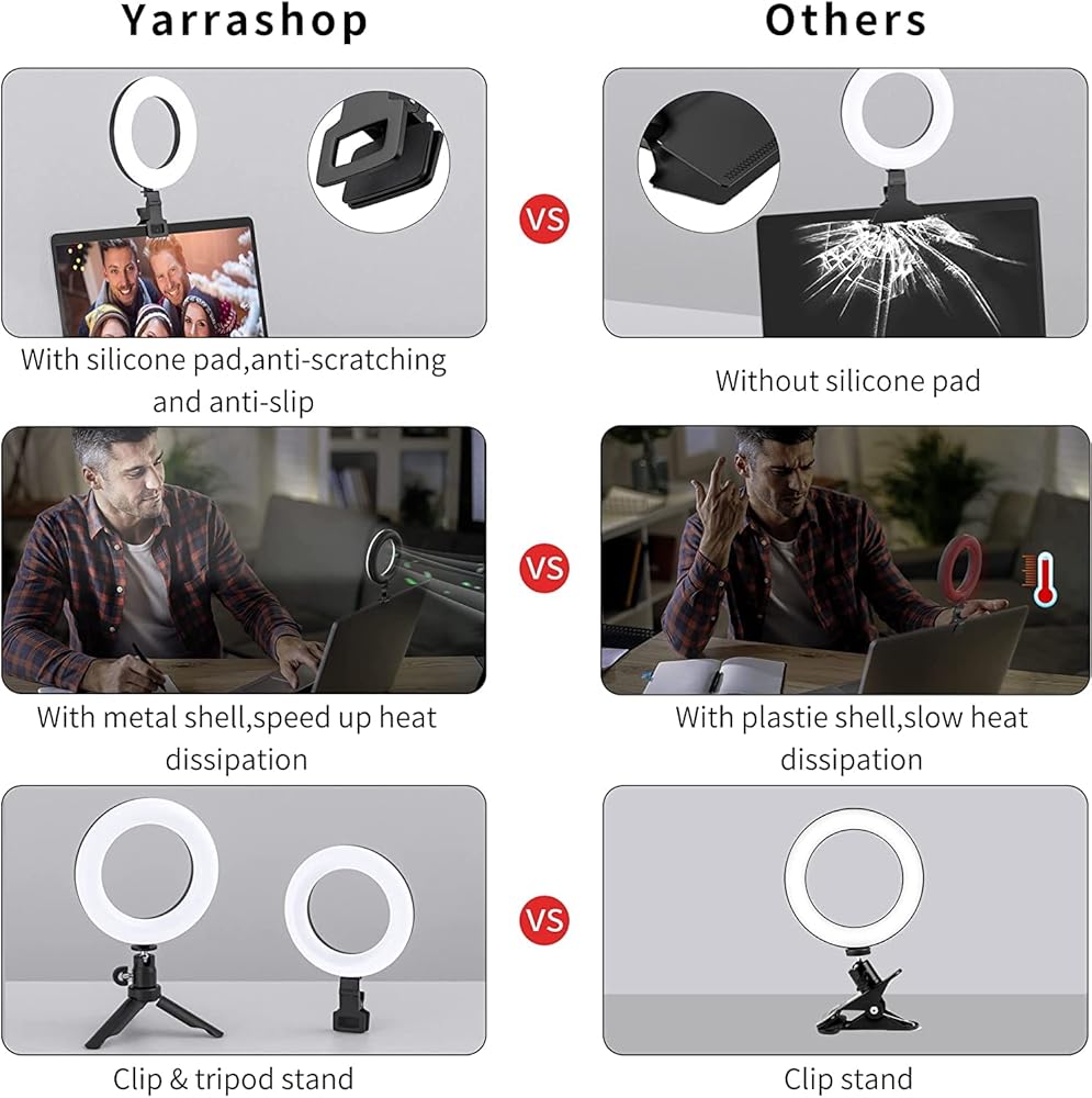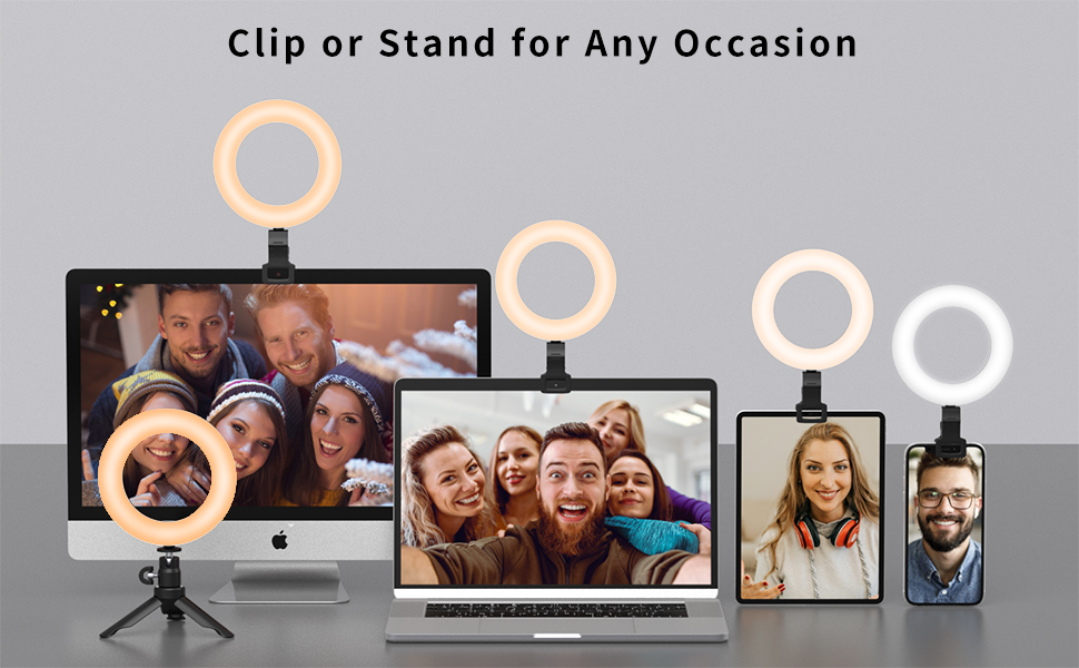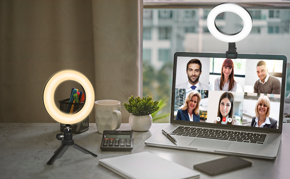 ✅ 【RING LIGHT WITH CLIP & TRIPOD】 This video conference lighting kit comes with clip and tripod. Can be used as a ring light clip on laptop computer monitors iPad phone or as a desktop ring light, provide good lighting, keep you in good condition in front of the webcam.