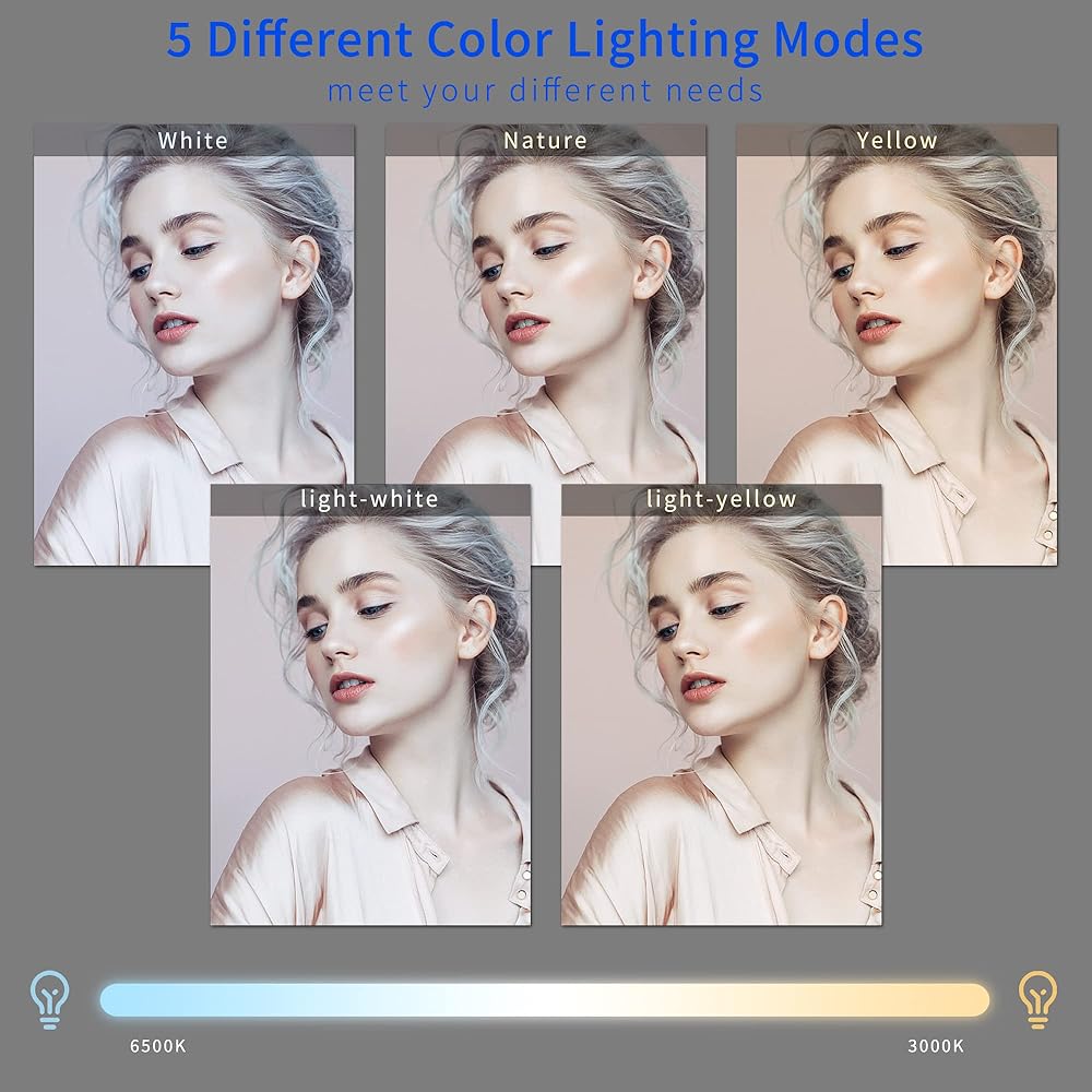 ✅ 【5 COLORS & 10 LEVELS BRIGHTNESS】 Ring light can offer 5 different light colors(white,light-white,nature,light-yellow,yellow). giving you the best skin tones on the video. features 60 LED chips inside of the ring light, light bright, no shadow, no glare, can be adjusted to 10 different bright levels, provide you different lighting options.