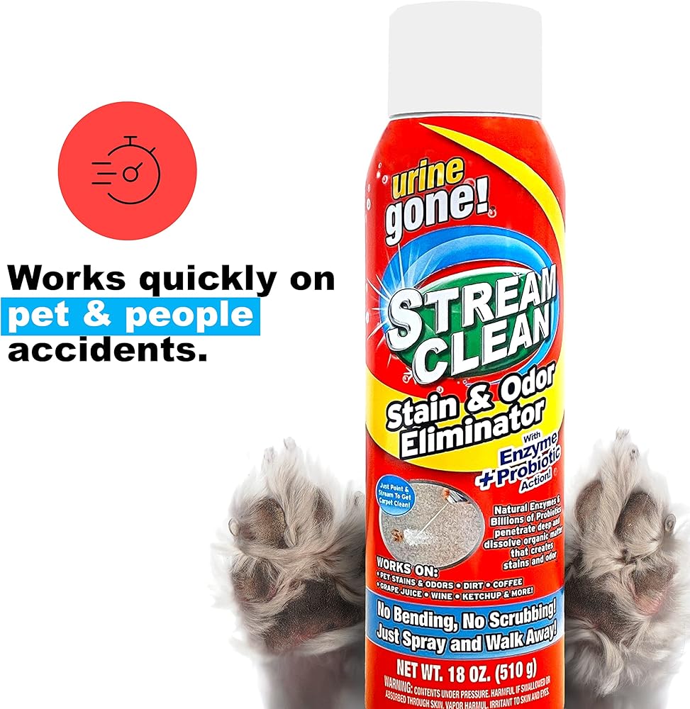 SAFE FOR USE AROUND INDOOR & OUTDOOR FORMULA - Urine Gone StreamClean is safe for carpets, rugs, fabric upholstery, bedding, laundry, floor mats, carpet interior of car and fabric car seats!