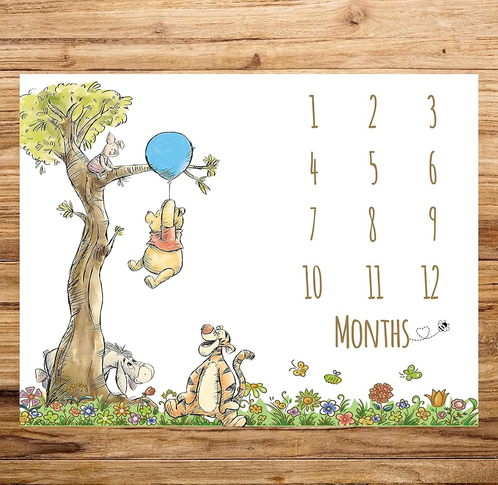 OCCASION: Classic winnie background for babyboy. A perfect way to track baby's growth during the first twelve months and cherish memories for years to come! Perfect nursery and newborn supplies.