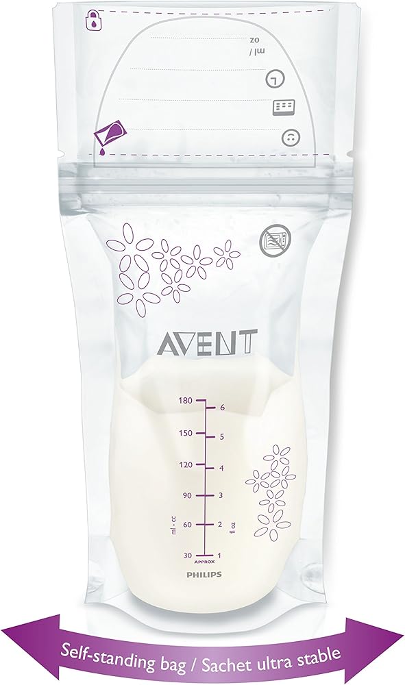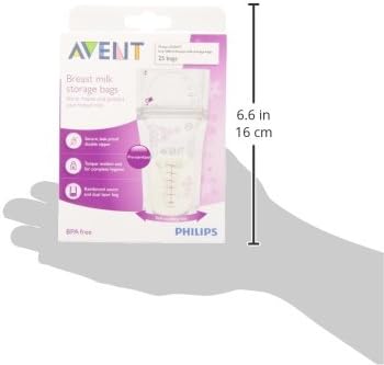 Philips AVENT SCF603/25 Breast Milk Storage Bags protect and safely store your precious breast milk. With reinforced side seams and dual layer bag, they are strong and durable, and the double zipper ensures no leaks. They are pre-sterilized for immediate use and the self-standing bag is easy to use with a wide neck for easy filling and pouring. You can use them for storage in the in the fridge or freezer. Includes 25 bags.