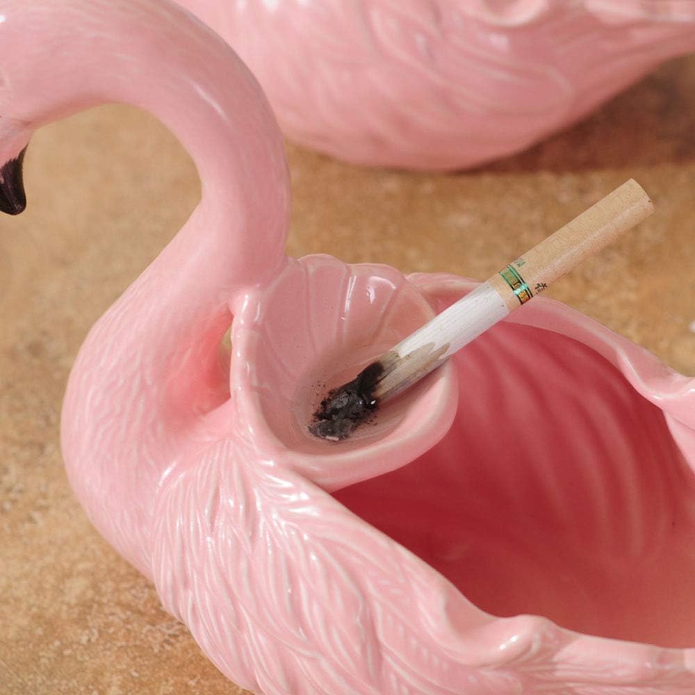 FUYU Pink Flamingo Creative Ceramic Cigarettes Ashtray Women's Smoking Ashtray Fancy Gift Decor Home Office