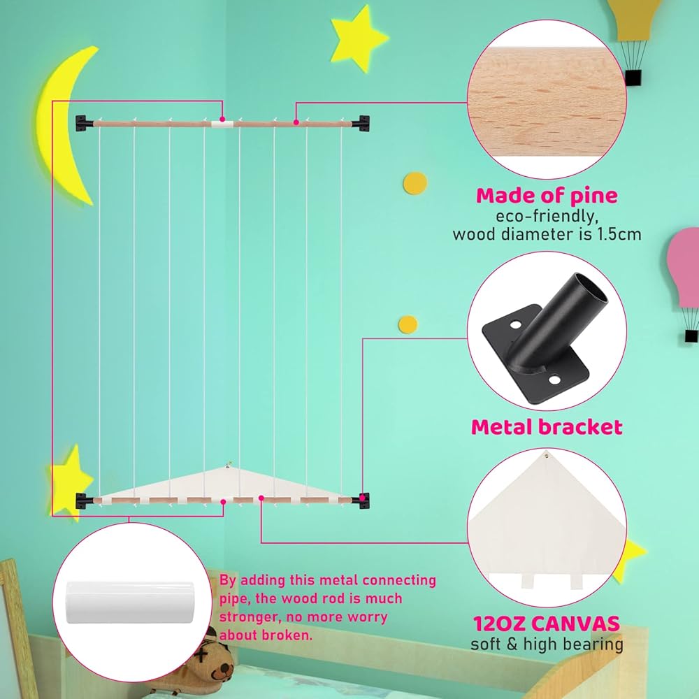 High Quality & Durable: Unlike other toy hammock nets, which are easy to break and leak. Our stuffed animal toy hammock adopts high quality 12oz canvas with phoebe wood, its bearing capacity is max to 15kg, which is durable and works for years.