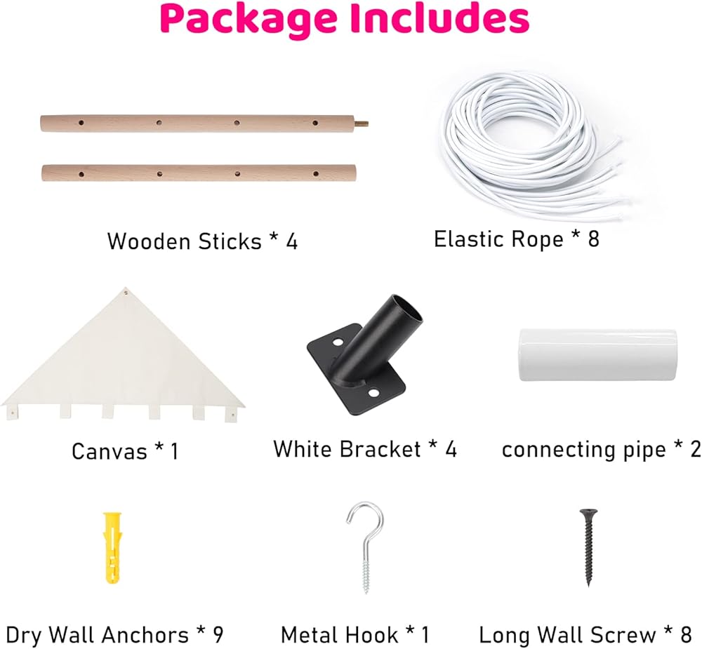 Adjustable installation height: Thanks to the elastic ropes, height of this hanging stuffed animal storage is adjustable. The height is optional from 55'' to 71'', according to your needs.