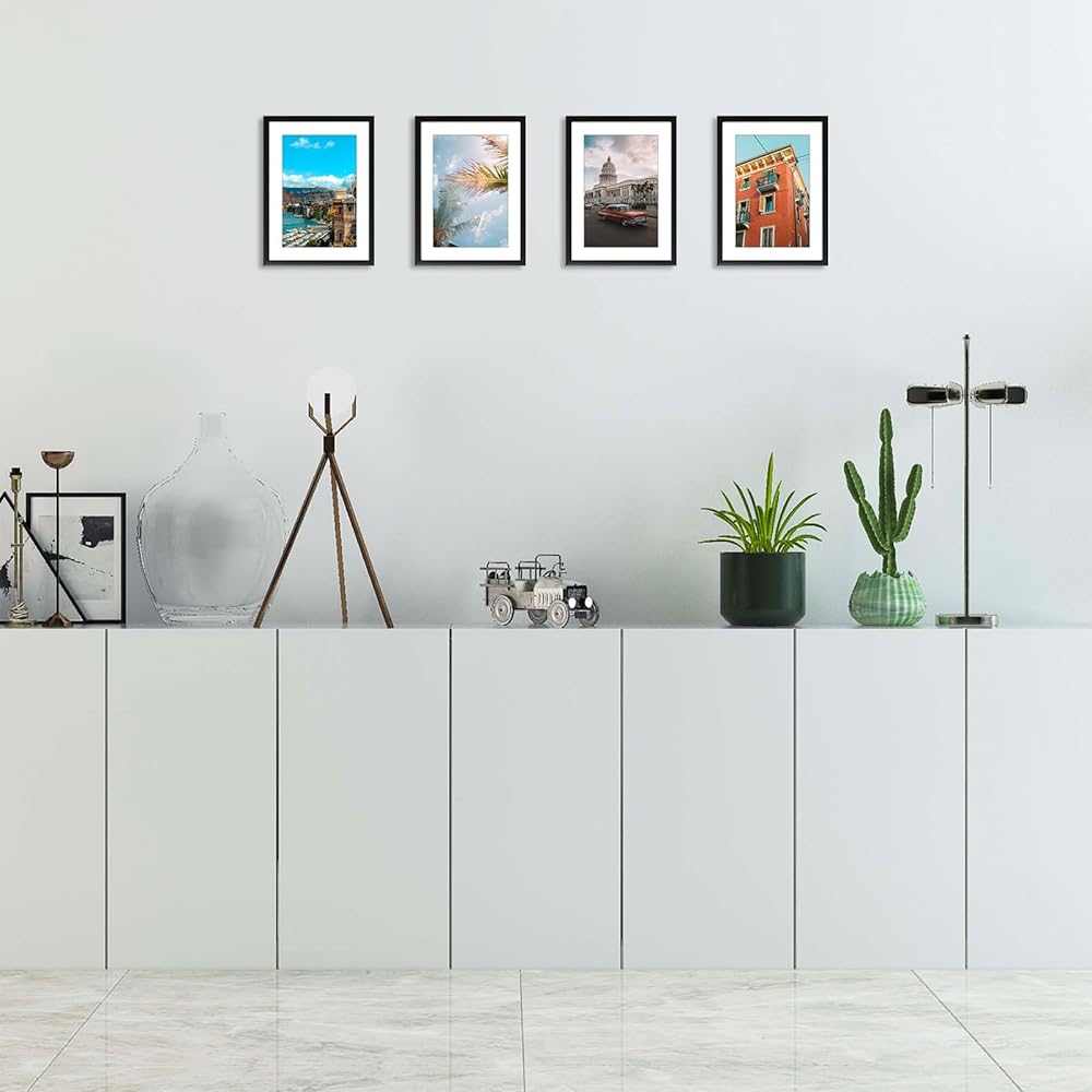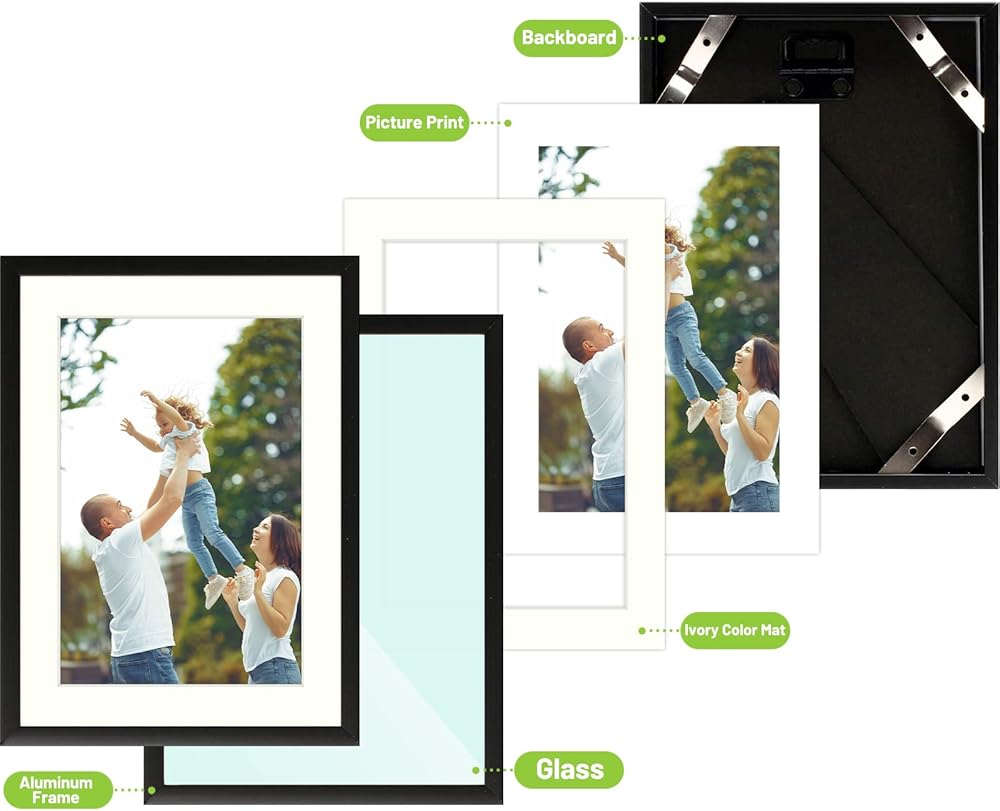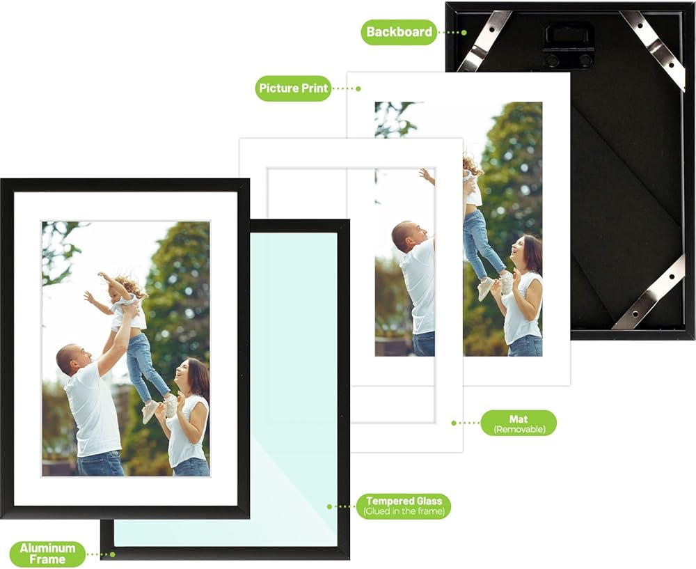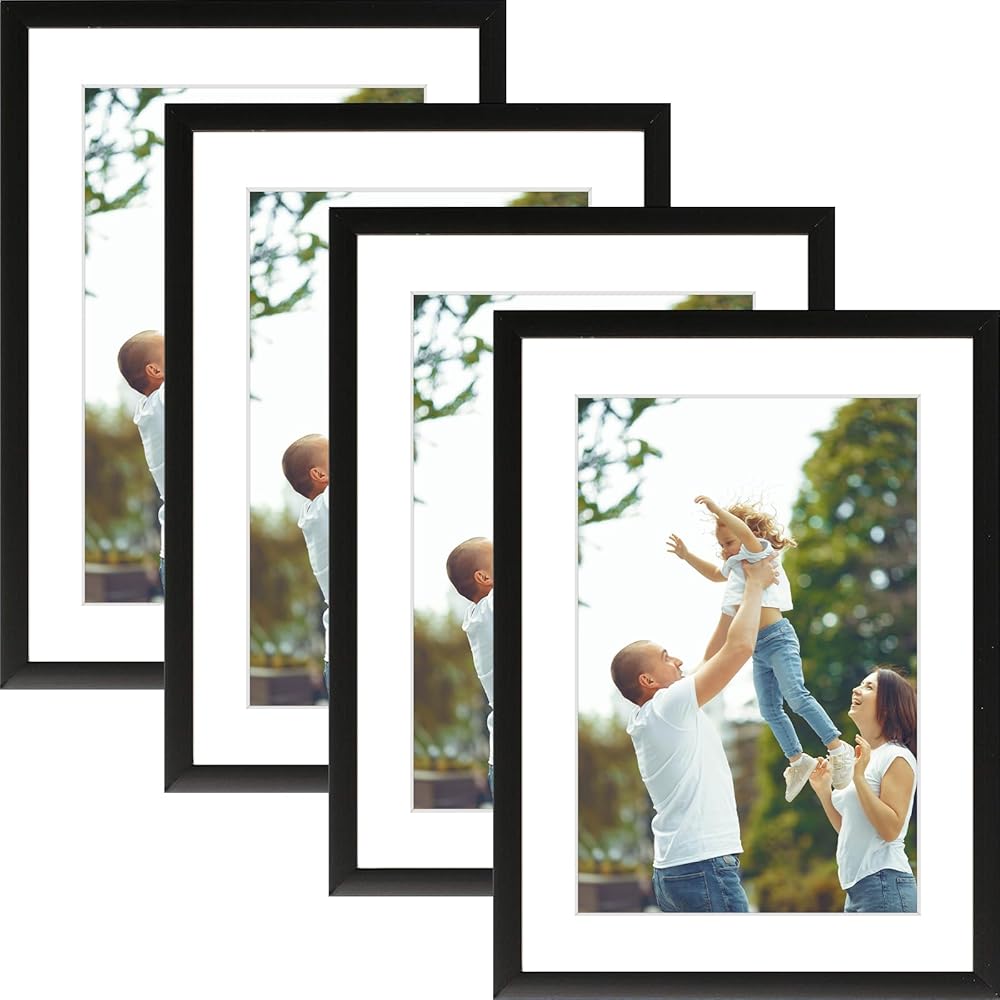 Golden State Art - 5x7 Metal Picture Frames with Mat for 4x6 Photo - Set of 4-5 x 7 Aluminum Photo Frame with Real Glass - Wall Decor or Tabletop Display - Classic Black