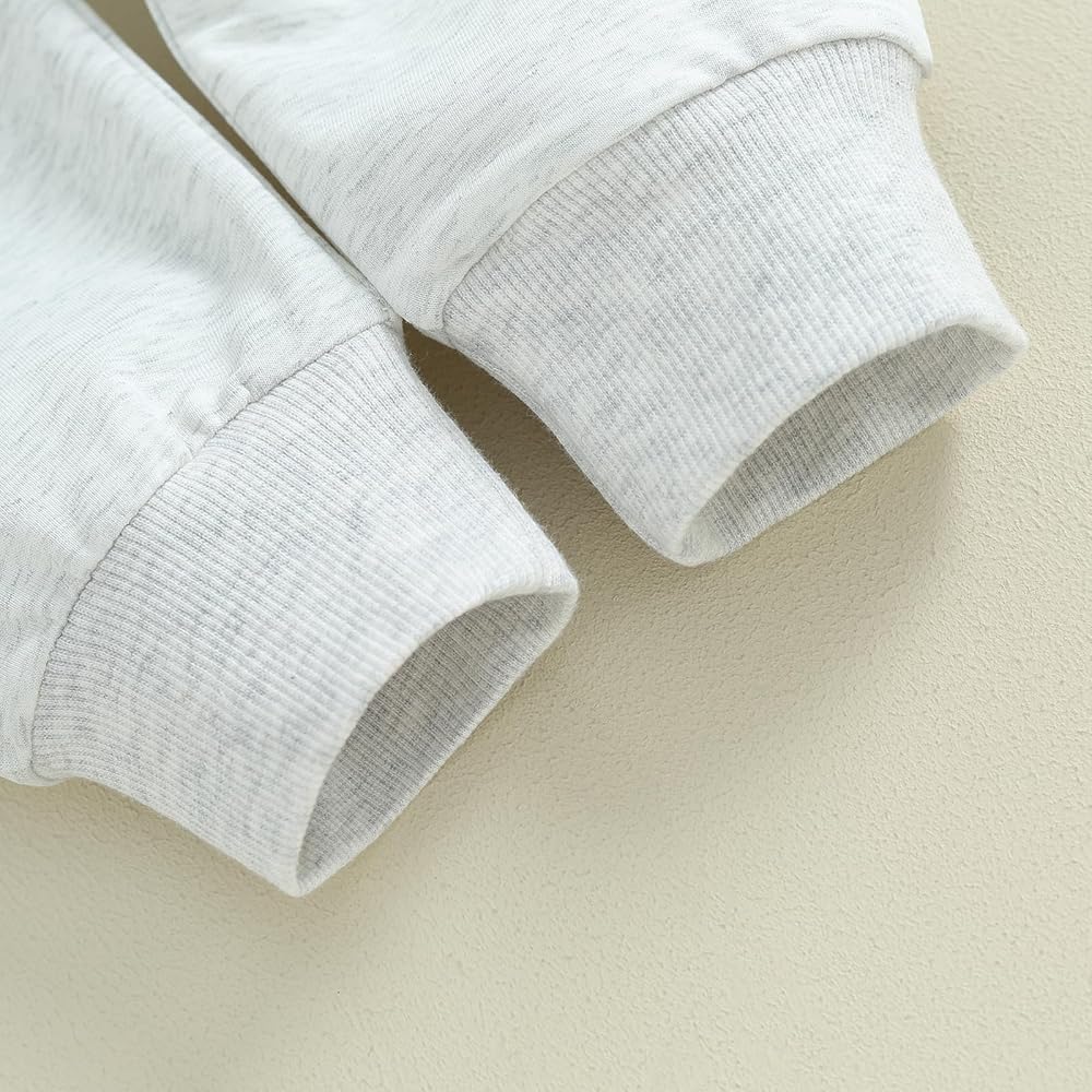 • Features: The sweatshirt has long sleeve, crew neck, letters printed, comes with a pair of cartoon solid color sweatpants. This baby's outfit makes infants more fashionable.