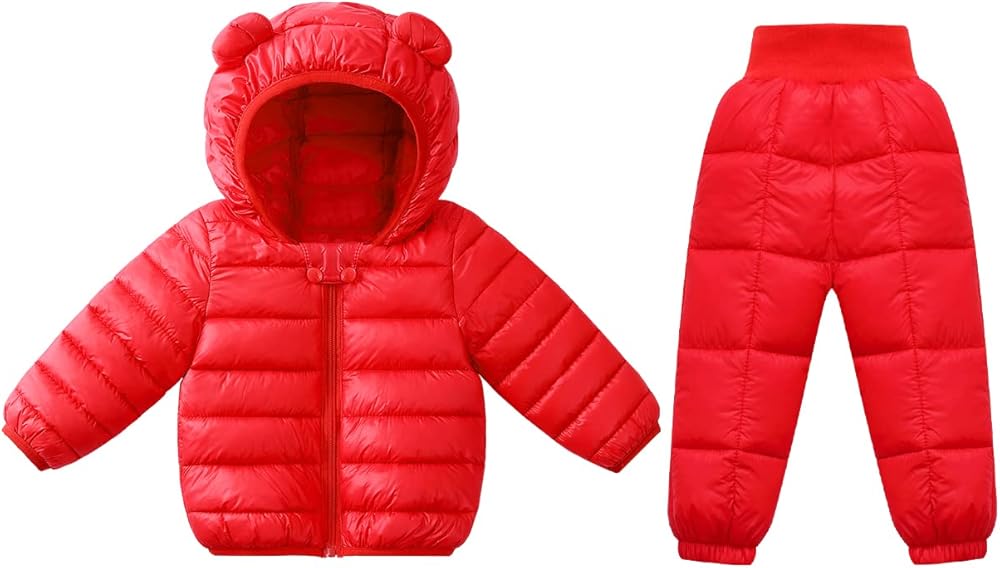 🐻 There are many sizes to choose from: This snow pants and jacket suitable for 18-24 months baby, 2t-3t toddler, 3t-4t Kids, 4t-5t children. Please refer to the size chart on the left for specific sizes.