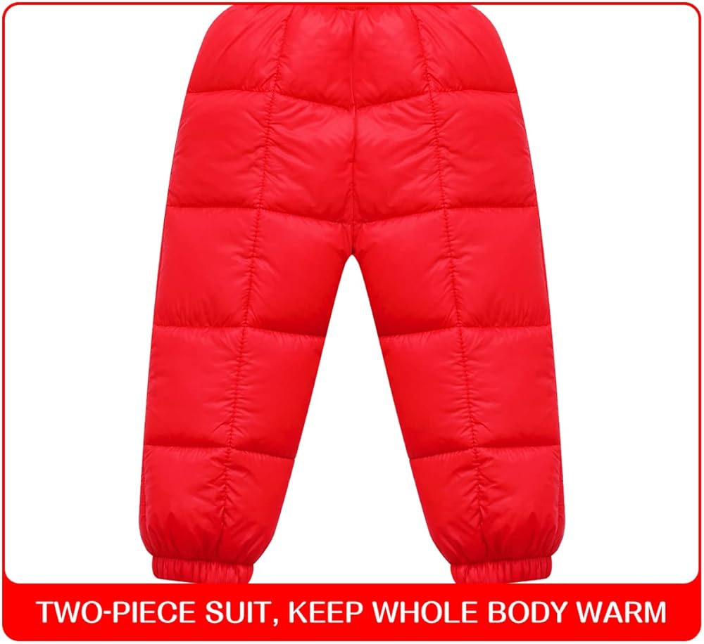🐻 High-quality Materials- The baby winter snow suits and snow pants is made of high-quality polyester fiber, and the three-layer lock temperature .The snow pants and jackets can keep your cute toddler warm indoor or outdoor in the cold winter.