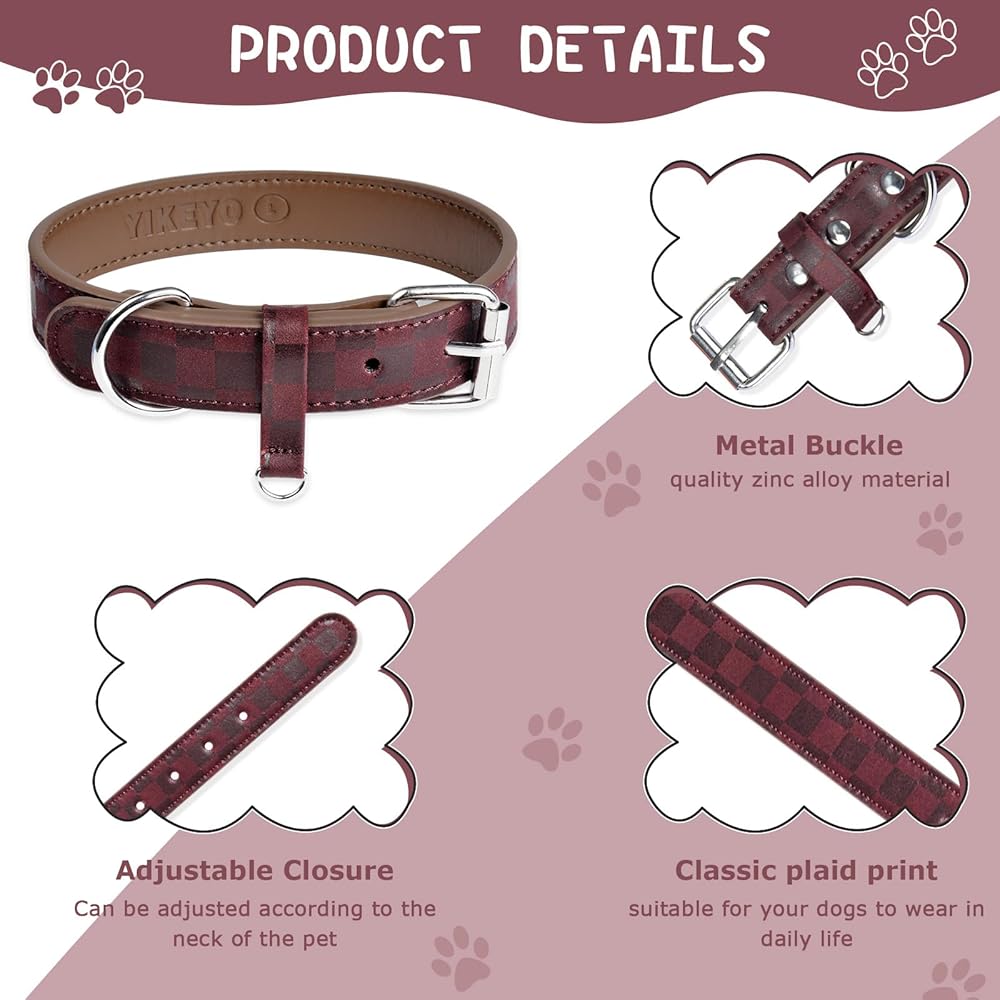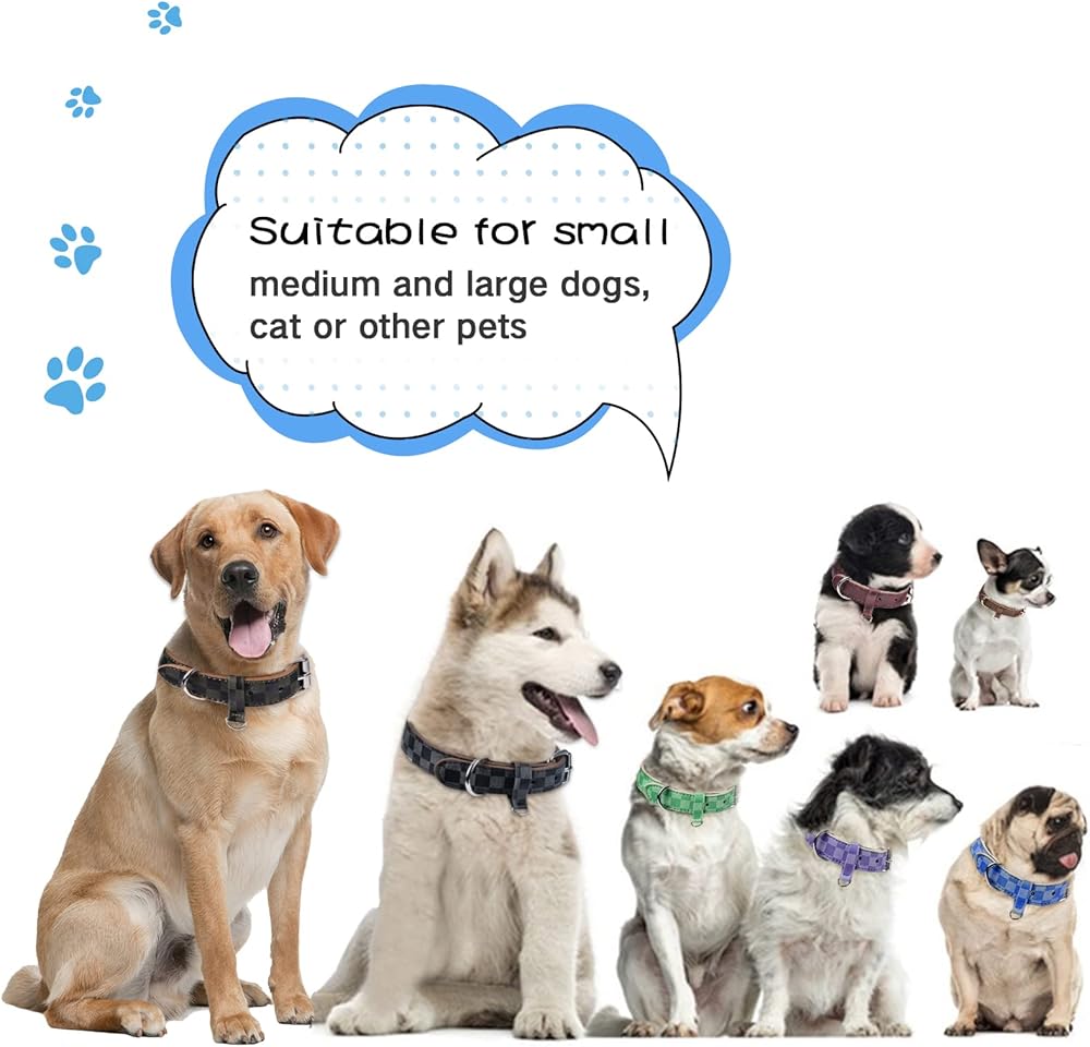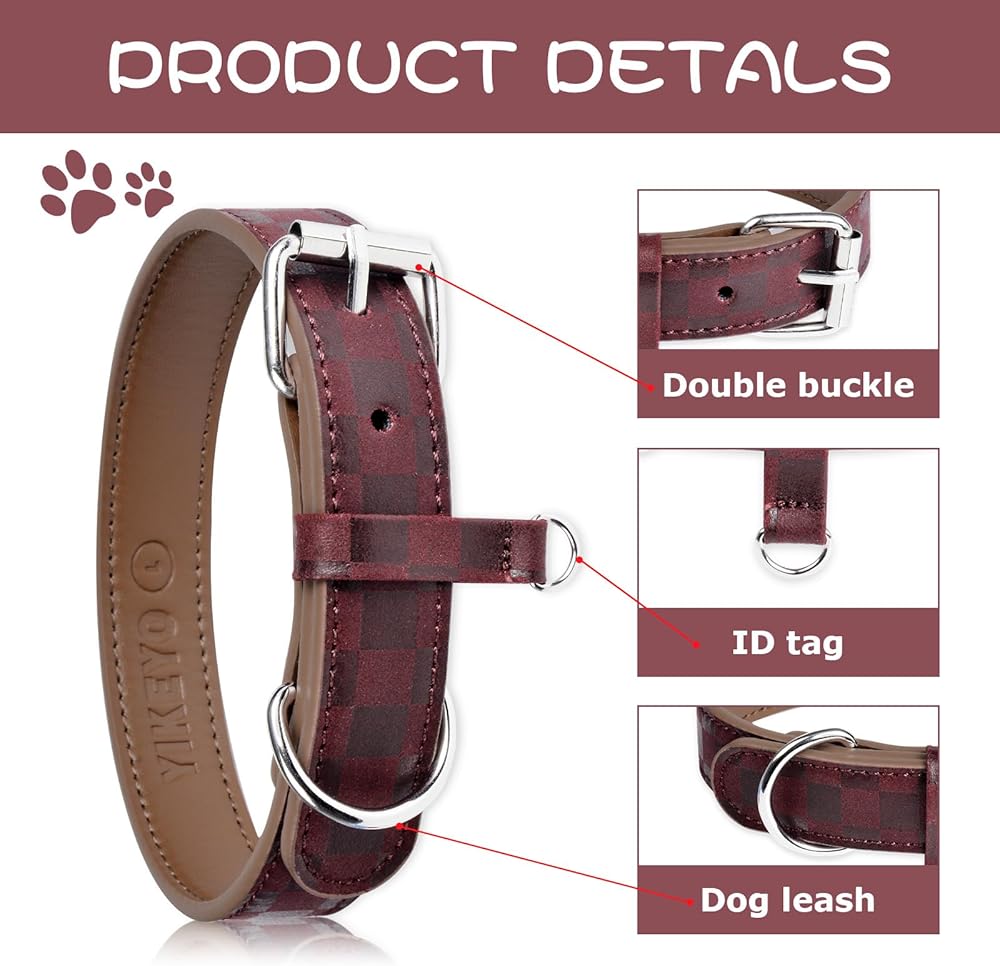 【VANTAGE】Compared with nylon dog collars and other dog collars, leather padded collars are more comfortable and durable. A classic plaid pattern that never goes out of style.Get the female dog collars and male dog collars enjoy a stress-free day by walking your dog without any fear. Available in many sizes and colors, please visit Kosiyi for more new arrivals.