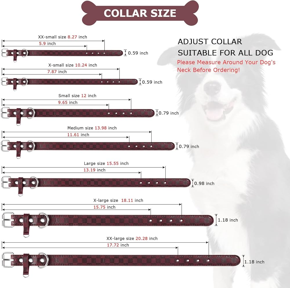 Dog Collar for Small Medium Large Dogs Pet Collars Girl Boy, PU Stamping Leather Plaid Dogs Collar Adjustable Chihuahua Teacup Yorkie Puppy Collar Cats (XX-Small (Neck 5-8in), Burgundy)