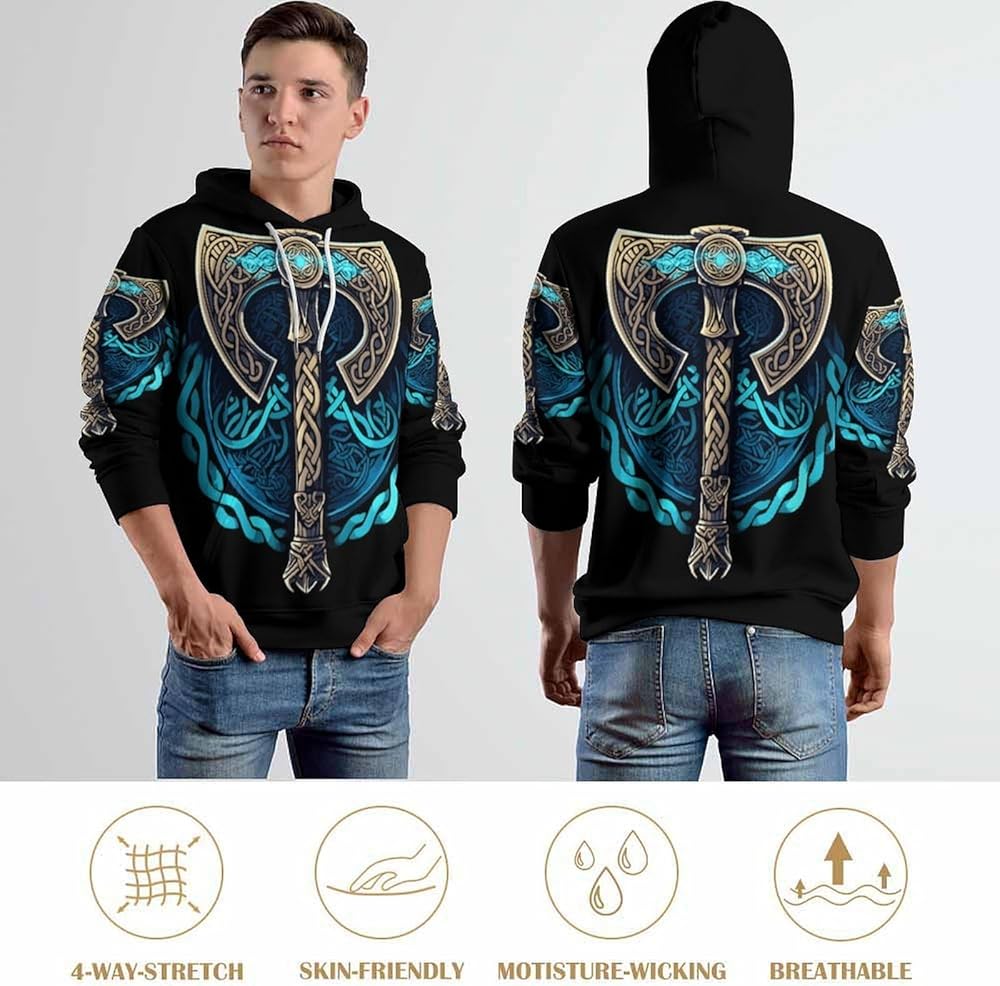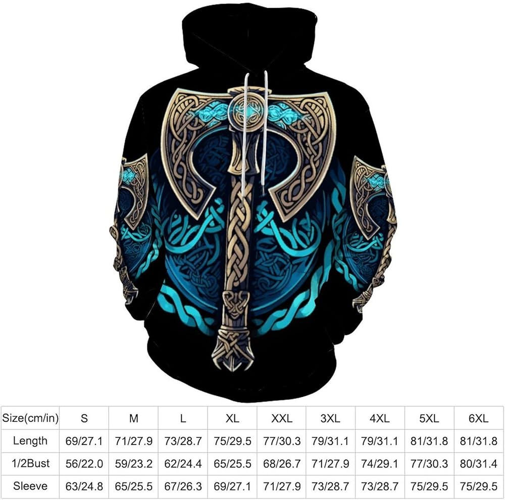 JooMeryer Men's 3D Graphic Print Viking Hoodie Hooded Sweatshirts
