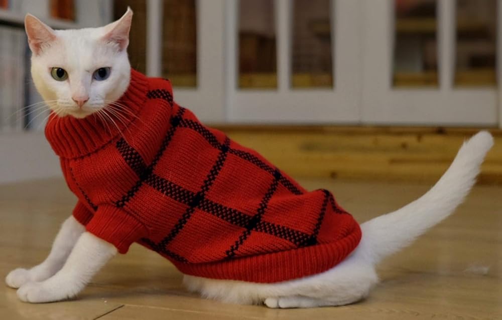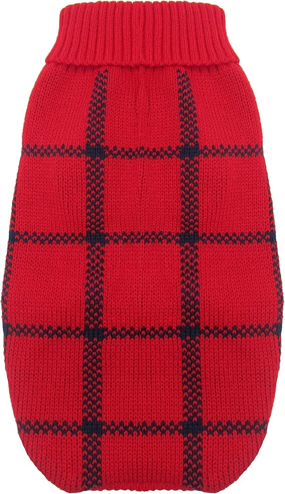 Classic dog sweater is a must-have cold-weather fashion for your pet. Easy on and off dog sweater with rear leg straps to hold sweater in place. Your dog will be stylish and warm in this dog sweater.