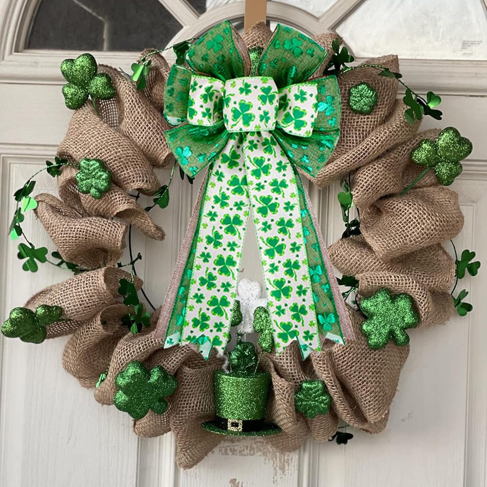 🍀☘ Unique Chic St. Patrick's Day Decorations: St. Patrick's Day wreath bow features in green shamrock and burlap color, adorned with shamrock patterns, which will sure to add an awesome touch to decorations for St Patrick's Day wreath and front door, and provide an instant dash of cheer to your party or home