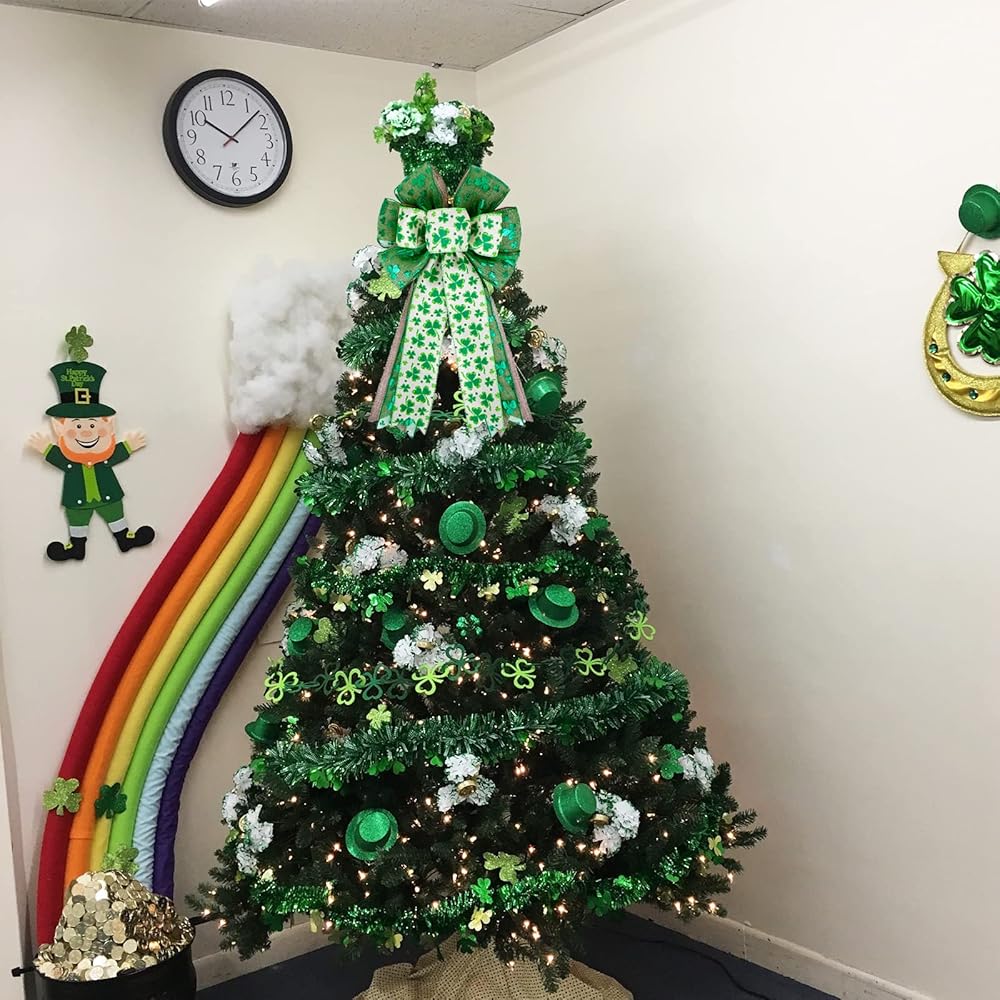 🍀☘ Durable Material:The green shamrock wreath bows are with pre-shaped for easy attachment, can be stored and reused at the same, or other events, or even as gift bows since they are portable, and can be easily stored and reshaped