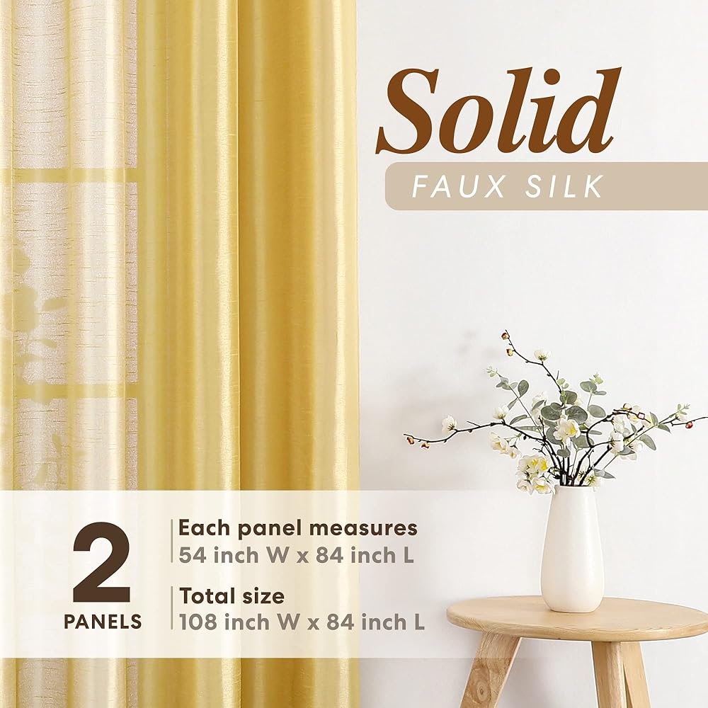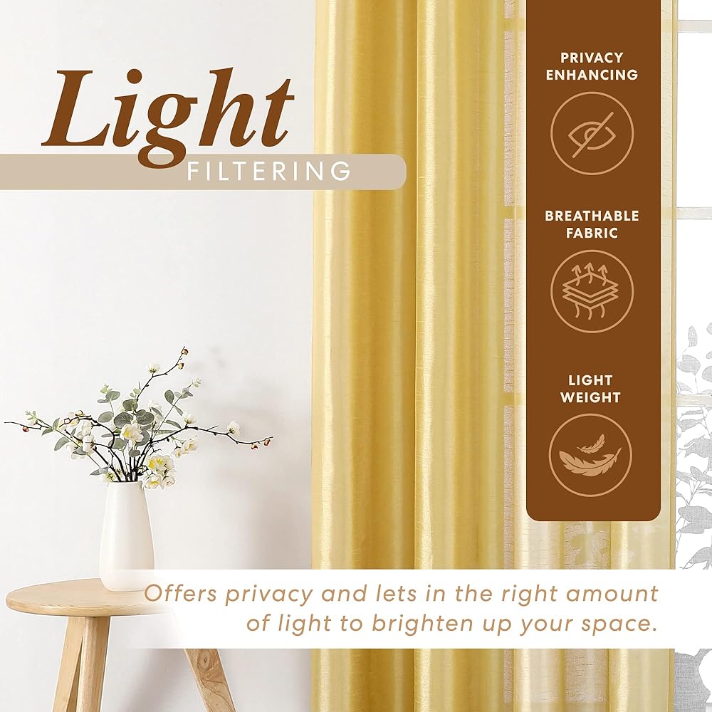 Modern Curtains: Semi sheer gold curtains lend a modern look to living rooms and bedrooms and are an easy way to add color and interest to a space. Solid window curtain panel two pack is fabricated from a machine-washable faux silk