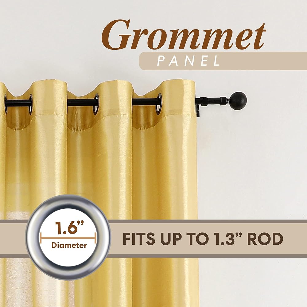 Grommet Curtains: Curtain panels have 8 grommets at the top to slide through a curtain rod for quick and easy installation. Each grommet ring has a 1.6-inch diameter and fits through curtain rods up to 1.38 inches