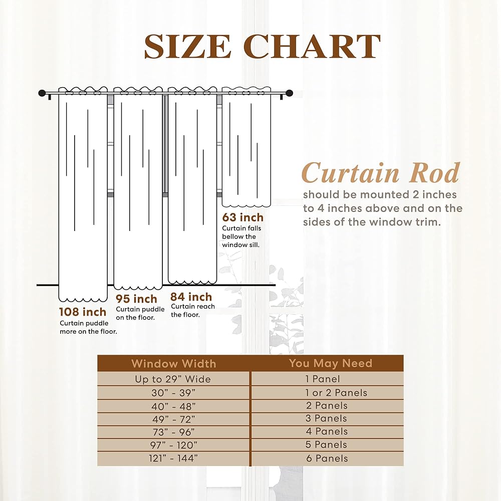 Floor Length Curtains: Each curtain panel measures 54 inches wide and 84 inches long and is designed to graze the floor. Curtain two pack has a total width of 108 inches