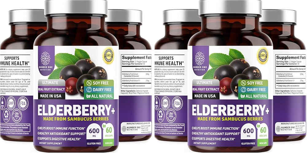 POWERFUL IMMUNE BOOSTER. Get your daily dose of immune support with our pure Elderberry capsules from Sambucus Nigra. It contains antioxidants to provide you an extra layer of protection all year round. SUPERIOR ANTIOXIDANT SUPPORT. Using real elderberry extract, our all natural Elderberry Capsules are packed with unmatched immune-boosting properties such as antioxidants and Vitamin C to keep you feeling your best. MAINTAIN YOUTHFUL SKIN. This antioxidant-rich formula makes the best solution for smoothing the appearance of wrinkles, fading age spots, and improving the glow and tone of your skin. EXPERIENCE BETTER DIGESTION with our Elderberry capsules that contain only the purest black elderberry which is rich in fiber to help improve digestion, ease constipation and reduce the feeling of fullness and bloating. SAFE AND ALL NATURAL. Strengthen your immune system year-round with an all natural formula that's right for you. Made in the USA in a registered facility that adopts GMP to ensure quality & potency. Order yours today! Â