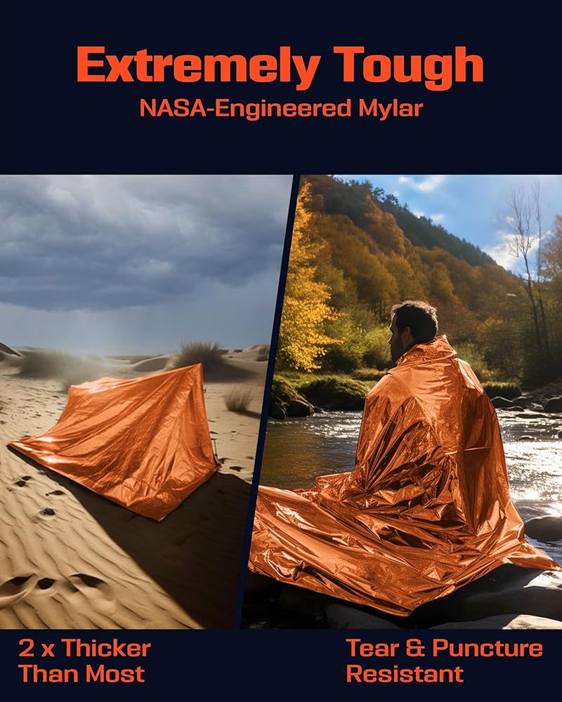 NASA-ENGINEERED TOUGHNESS: Our polyester and metallic Mylar emergency thermal blanket is tear and puncture resistant, with twice the thickness of most; Its high-tensile strength ensures it can be twisted or braided into cordage for outdoor emergencies.