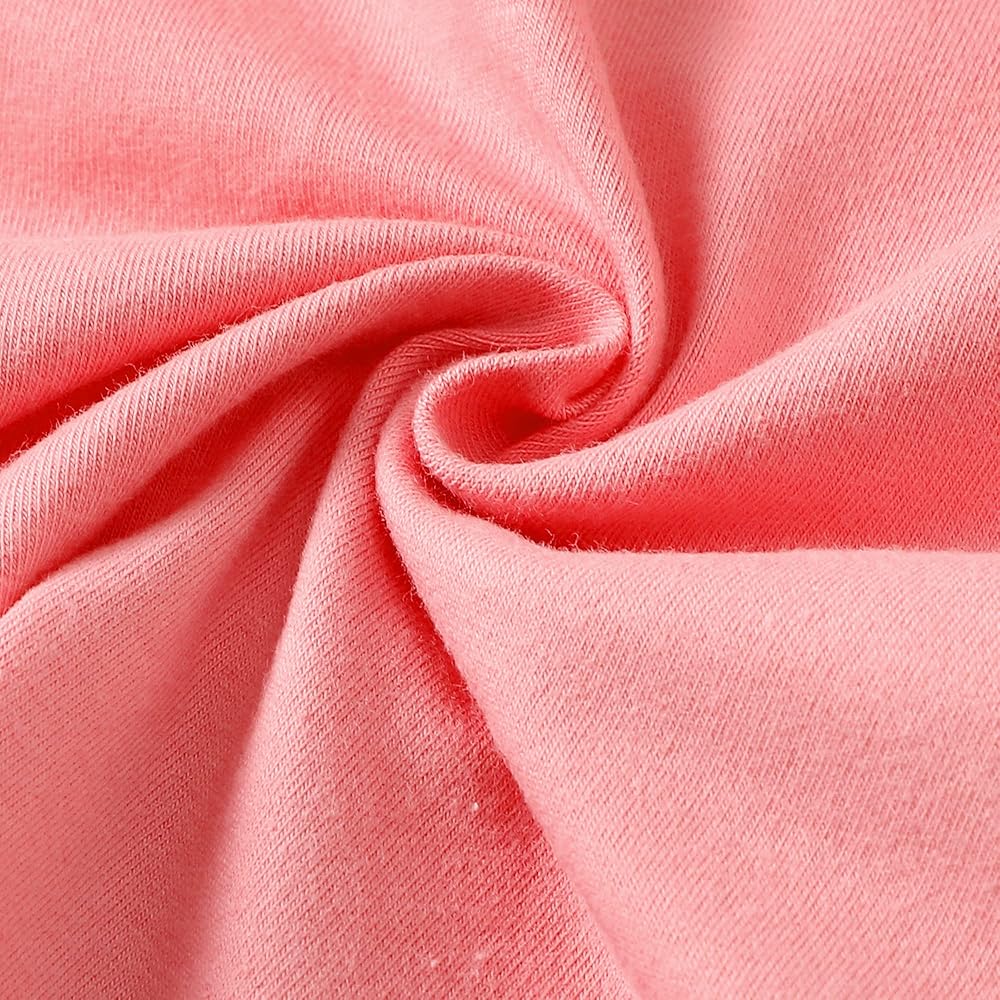 which are 95% cotton & 5% polyester, high quality material,very soft and comfortable, high-quality shirt resists fading, skin friendly and good water absorption for your little baby girl daily wear or playsuit.