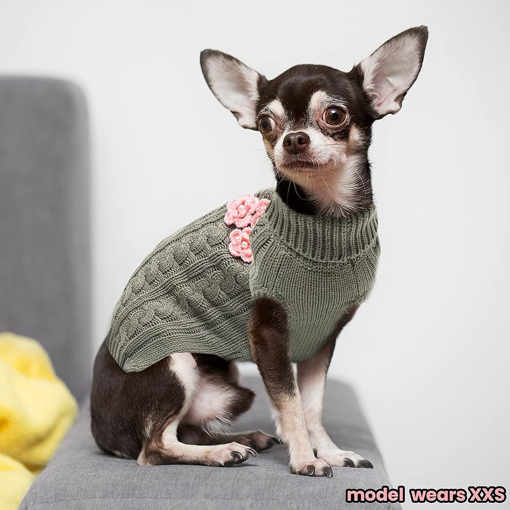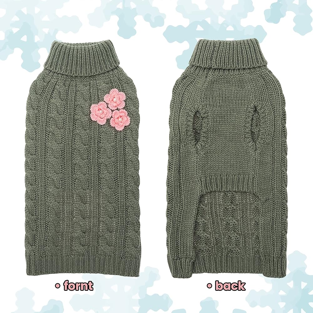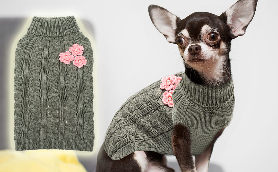 STYLISH DESIGN : This dog sweater features a classic twist flower knitted design, and there are 3 cute handmade flowers are sewn into the sweater on the back. Make your dog look adroable and charming.