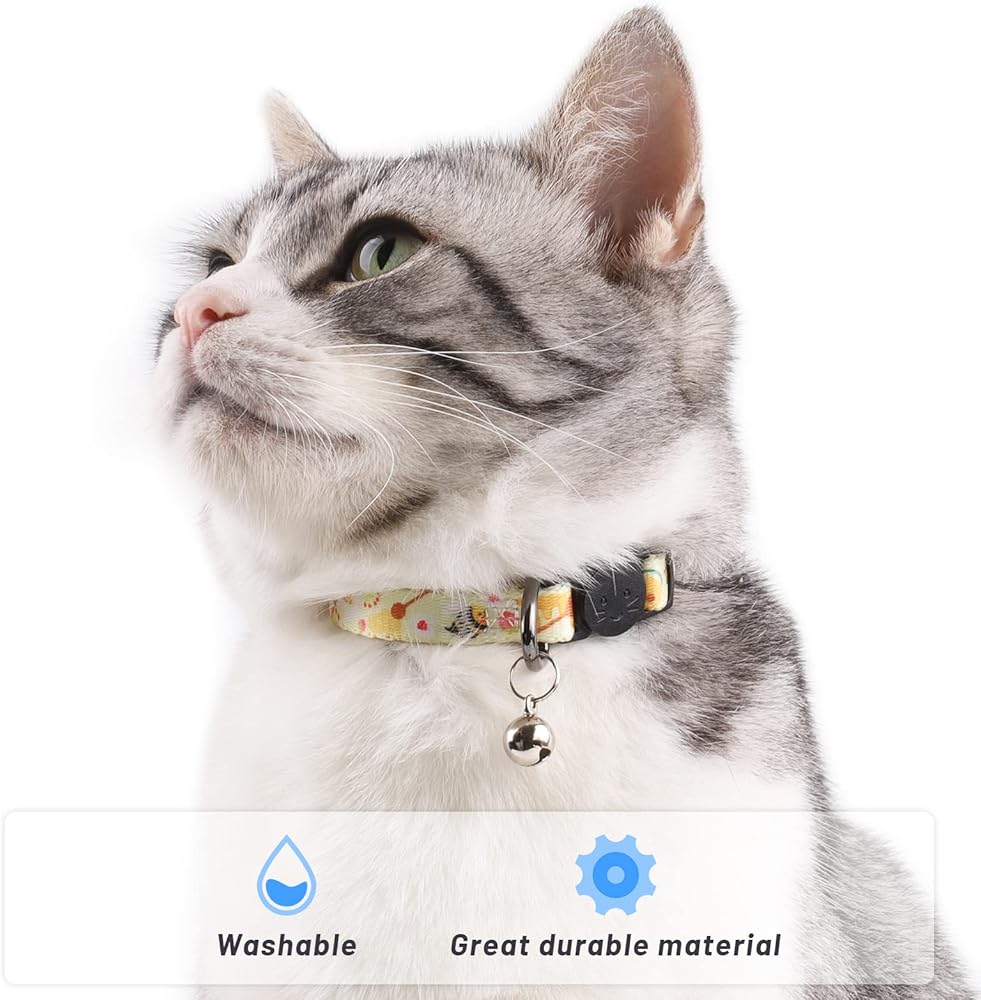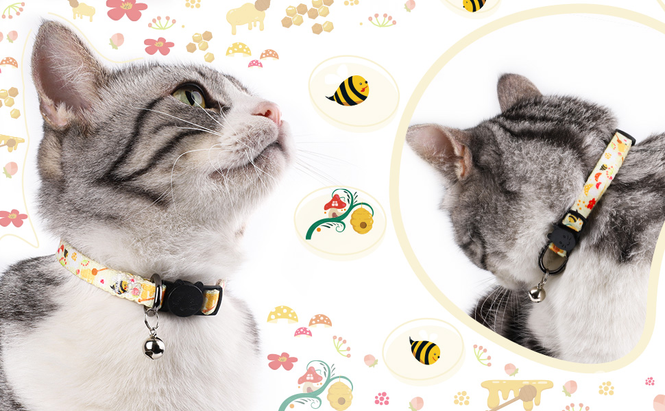 Adjustable Size: Cat collars are easily adjustable from 7.5" to 11", width is 0.4". Please measure your cat's neck circumference with a soft measuring tape to choose a correct size.
