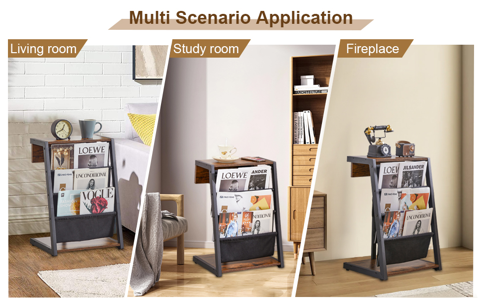 [Product Dimensions]Magazine Holder measures 16.5"W x 7.8" D x 22.8" H ; The 5 layer can be used as a table