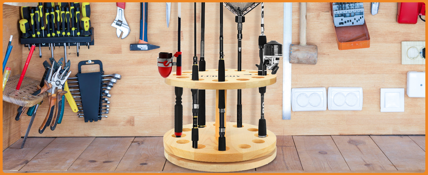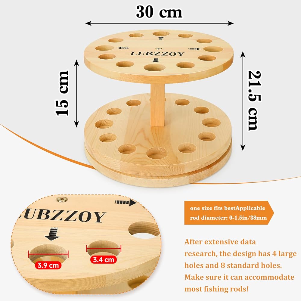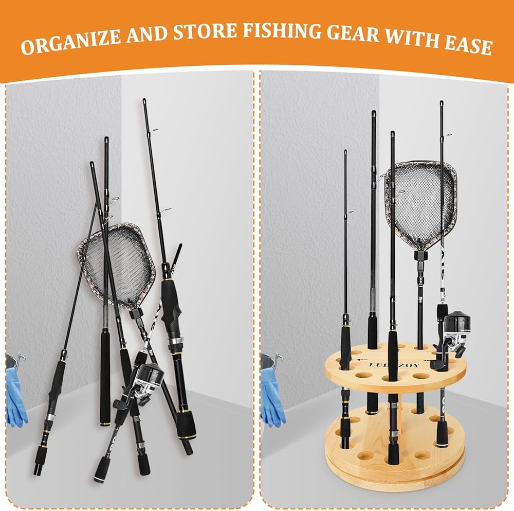 LUBZZOY Fishing Rod Holders for Garage,360 Degree Rotating Vertical Fishing Pole Rack,Vertical Fishing Pole Holders Wooden Round Storage Floor Stand, Fishing Rod Pole Rack Fishing Pole Organizer