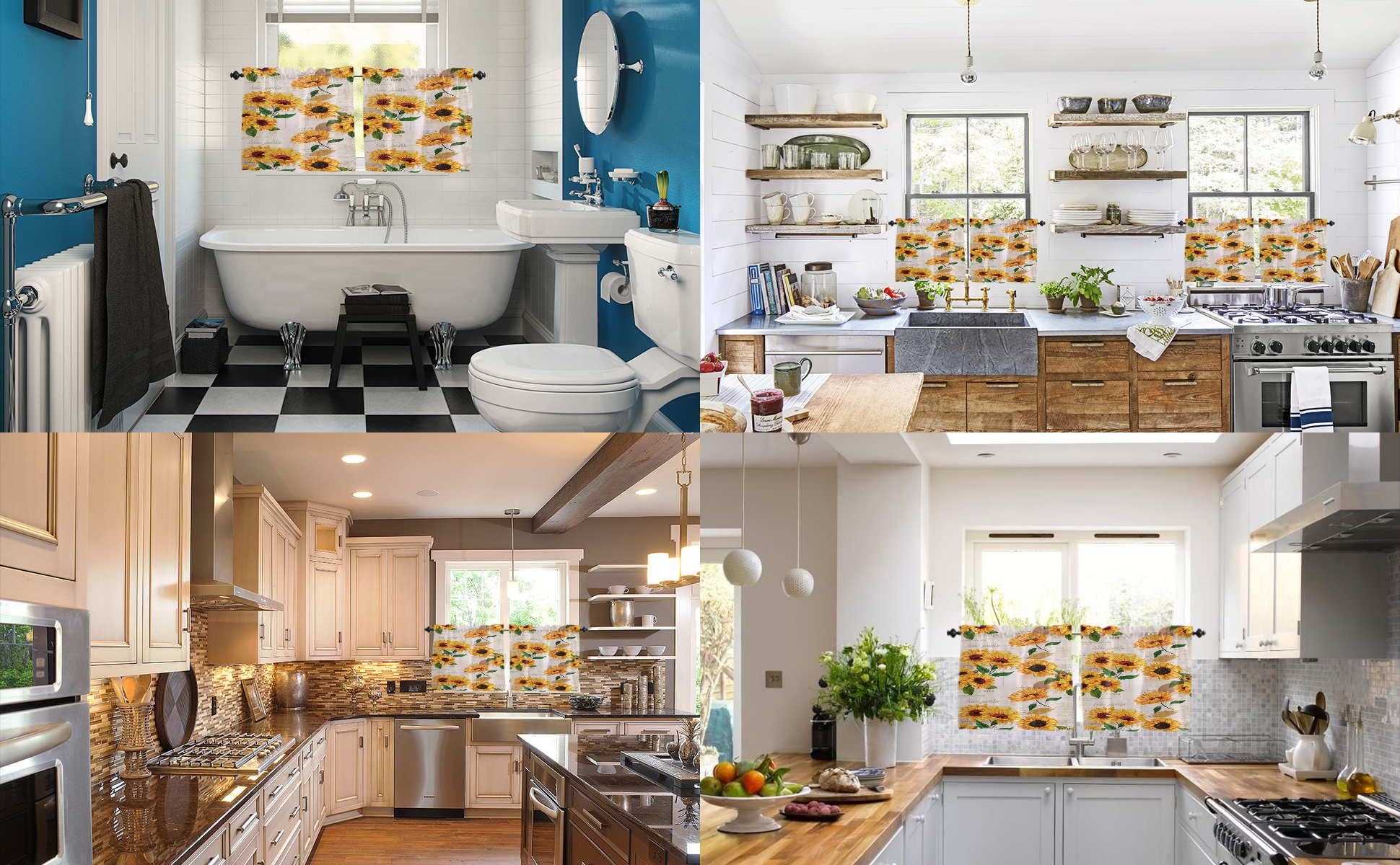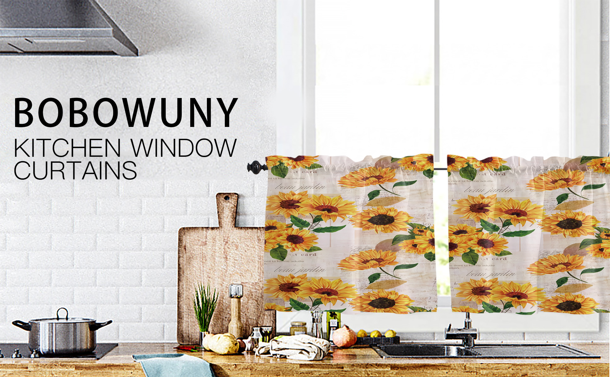 STYLE AND OPTIONAL SIZES: This cortinas de girasoles kitchen curtain with various pattern: floral/rustic/retro/farmhouse/summer/spring/animal/landscape/sunflower. tier curtain size: 55 x 24 Inches( each panel is 27.5W ). curtain length: 24L Inches (from the top edge of the rod to the bottom). Before ordering, please measure your window (length and width) and consider the width and length that best suits your window.