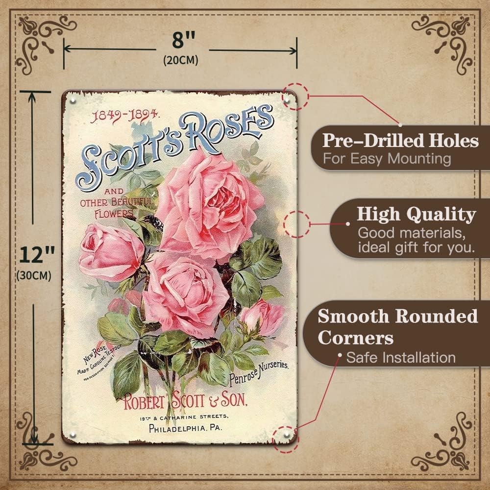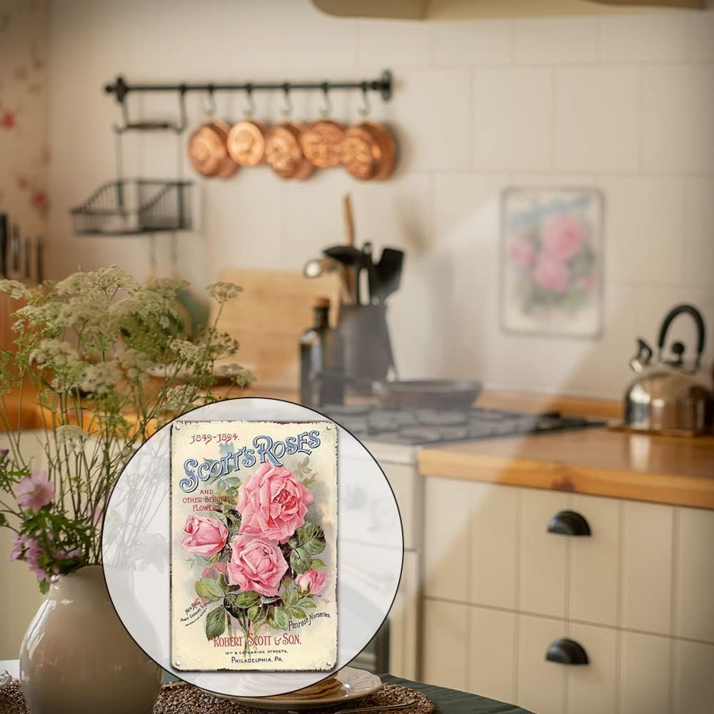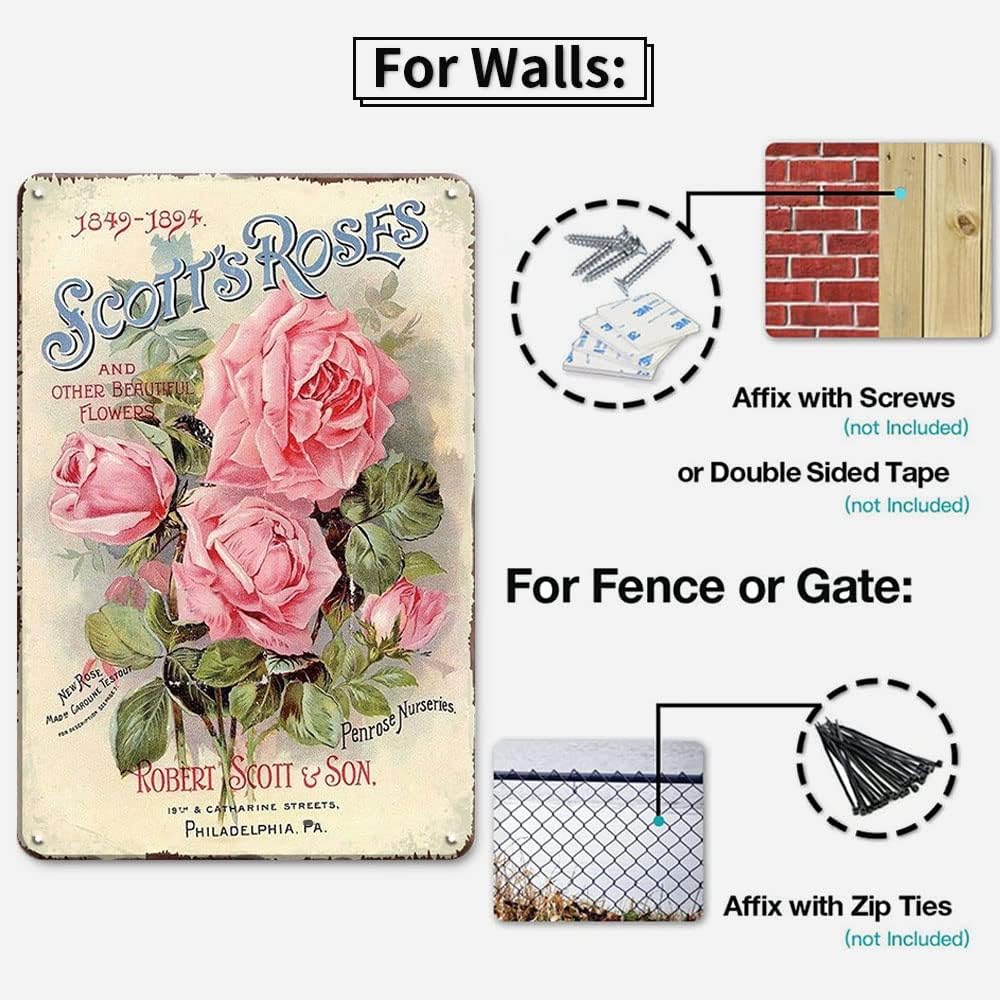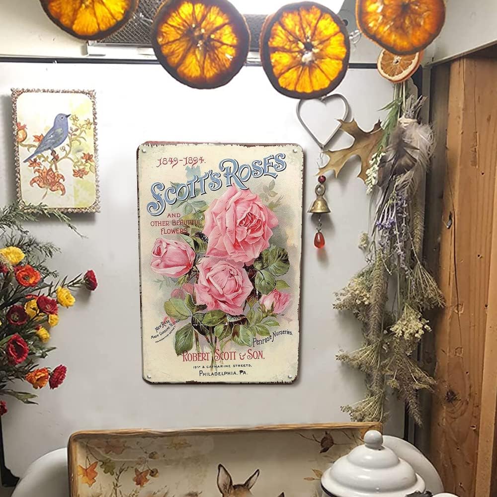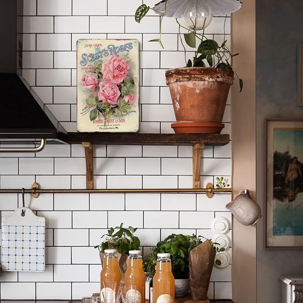 【Easy Hanging】This vintage cottage decor country decor will play an important decorative role in various occasions, such as garden, home, bedroom, bar, pub, restroom. It has four small pre-drilled holes for easy hanging with folded edges for safety, can be mounted with double-sided foam tape, command strips or nails(not include).