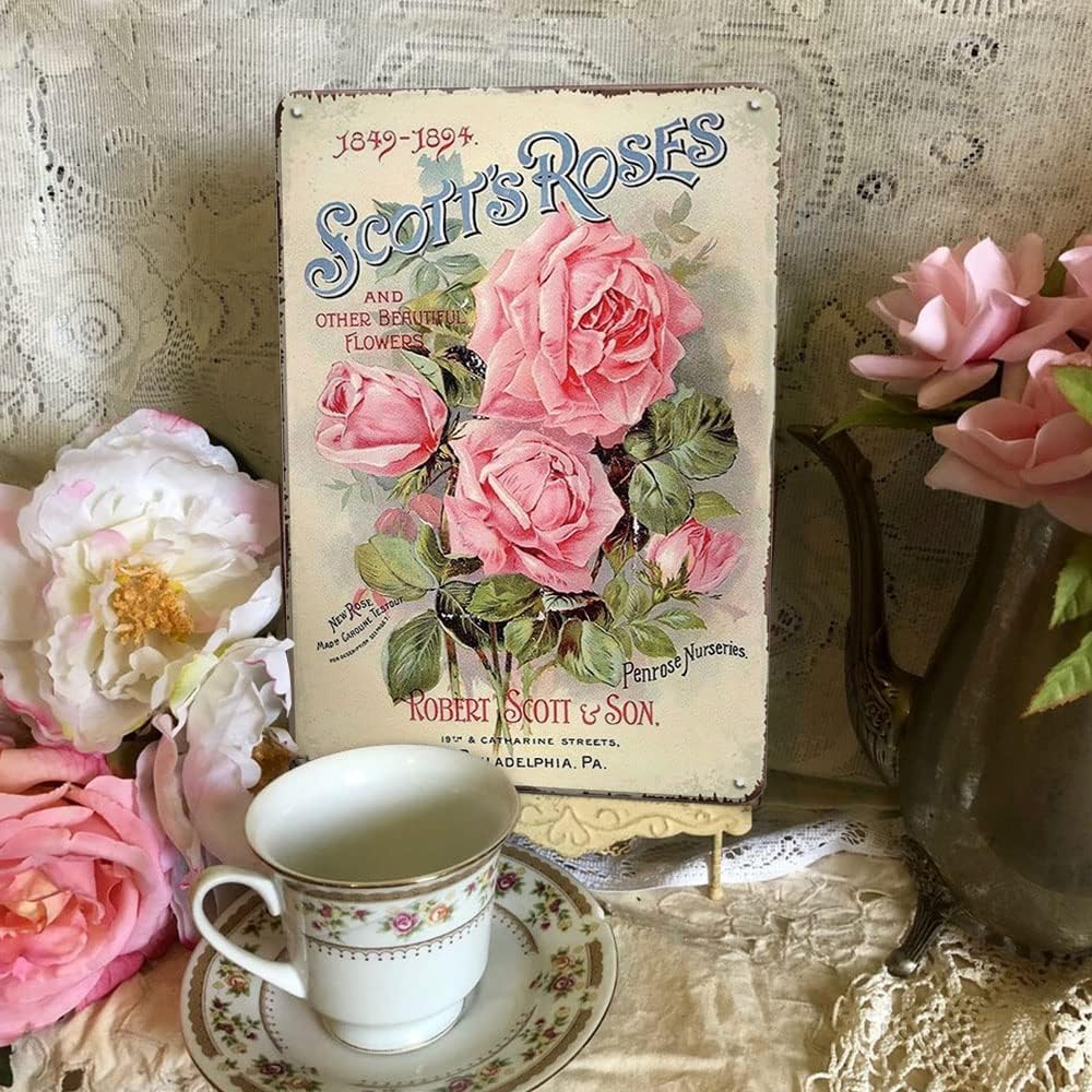 YOYI ART Vintage Pink Rose Wall Decor Tin Sign - French Country Victorian Cottage Shabby Chic Flower Signs for Room, Bathroom, Garden, Farmhouse Wall Decor Art Accessories, Gift for Women, 8 x 12 inch
