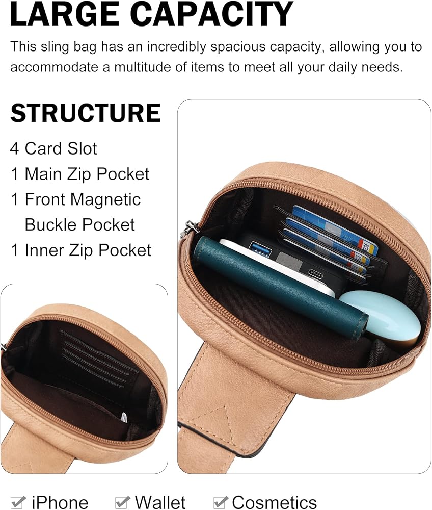 Multi-functional - This small sling bag for women is a versatile and practical accessory, featuring one main zip pockets and a convenient card slot design on the inside to help you organize your essentials. The front pocket is perfect for storing credit cards, keys, and cash, while the spacious main pocket keeps your phone safe and easily accessible.