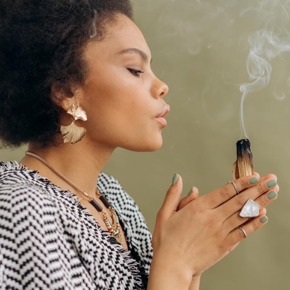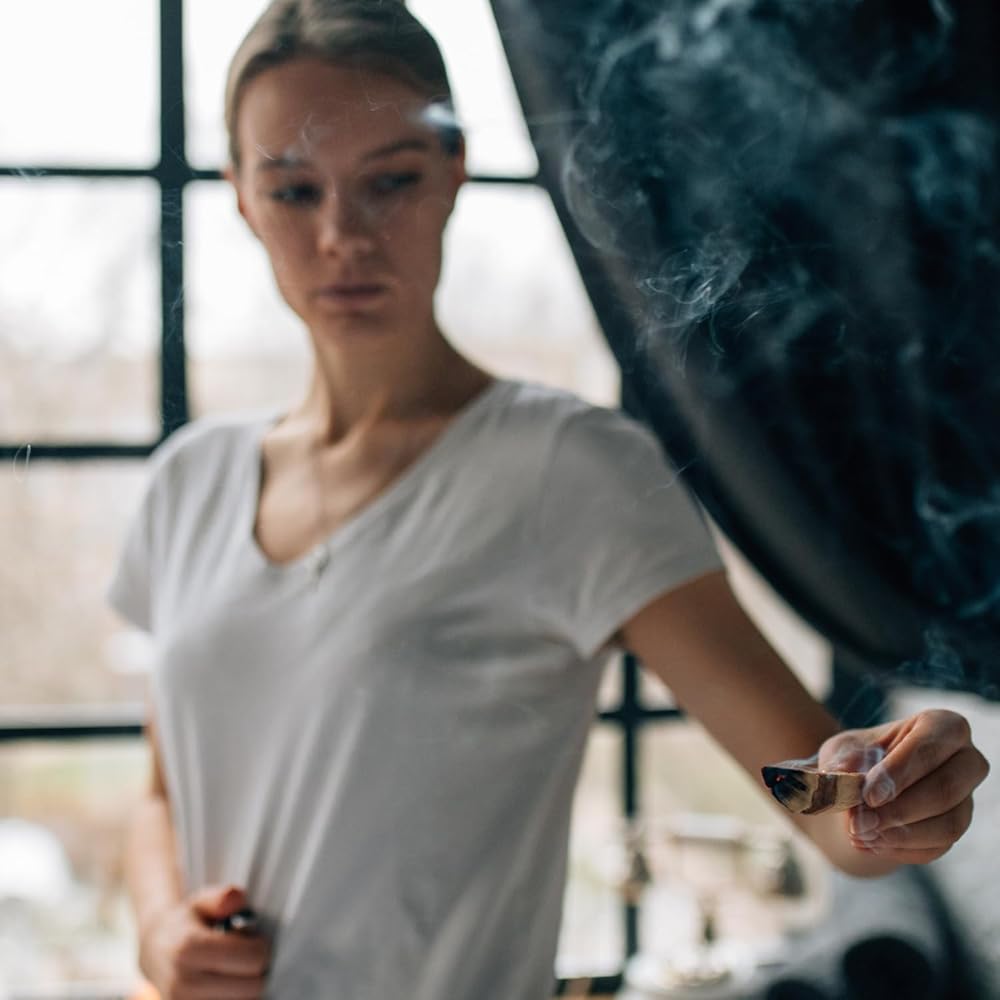 Hold the Palo Santo stick in one hand, and with the other, light the end of the stick on fire. Once it has been lit for a few moments, blow the flame out. There should still be a portion smoldering and letting off smoke. Walk around your home in a circular fashion and let the smoke touch all corners of the home. When you are finished, thank your palo santo, and end on a feeling of gratitude.
