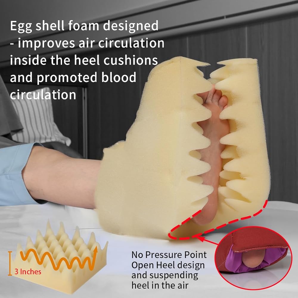 Special Opening Design's Ehucon heel cushion pillow :Open ankle outlet design allows the heel is floated on air, reducing contact points help to relief pressure and promotes healing of possible pressure sores at the heel.