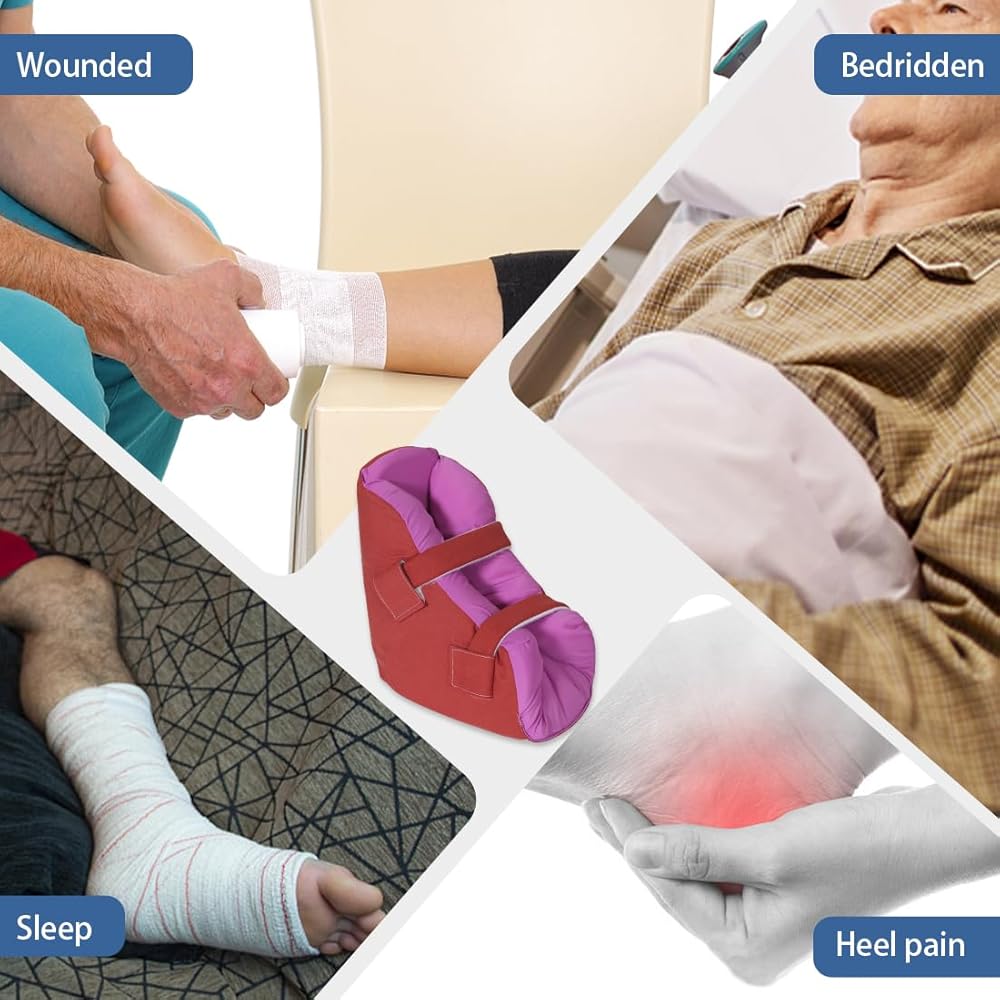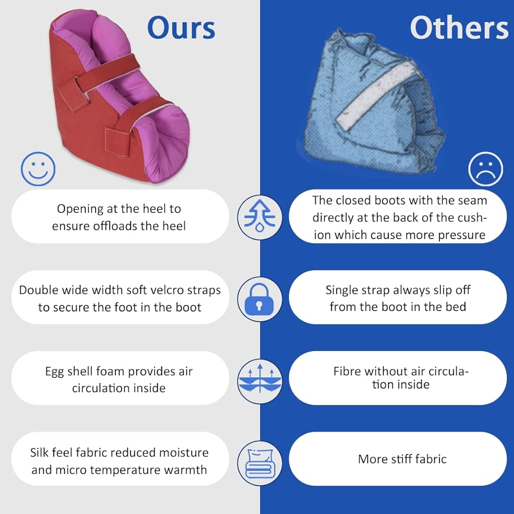 Details of Heel Cushion Pillow :Two adjustable Velcro straps are easy to use by caregivers and are designed to avoid the foot drop off the heel protector.