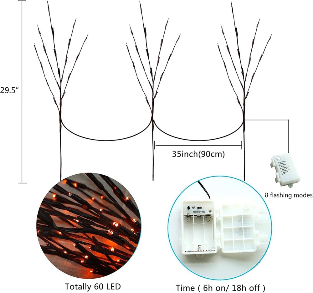 One of the key features of these branch lights is their convenient battery-powered operation. No need to worry about finding a power outlet or dealing with messy wires. Simply insert the batteries and watch as the branches come to life with a hauntingly beautiful orange glow.
