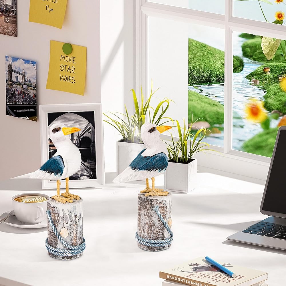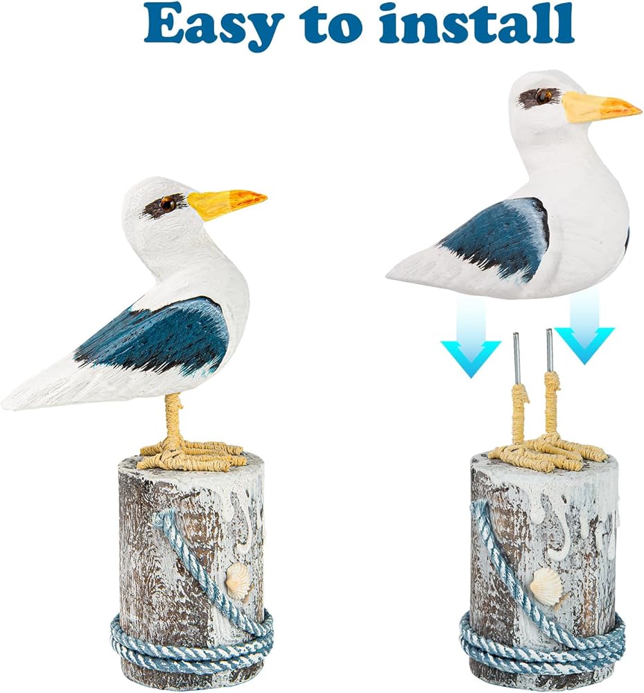 Lifelike seagull design, makes your home more joyful and delightful. Nautical statue seagull figurine decorations garden bird statue coastal beach home table decorations.