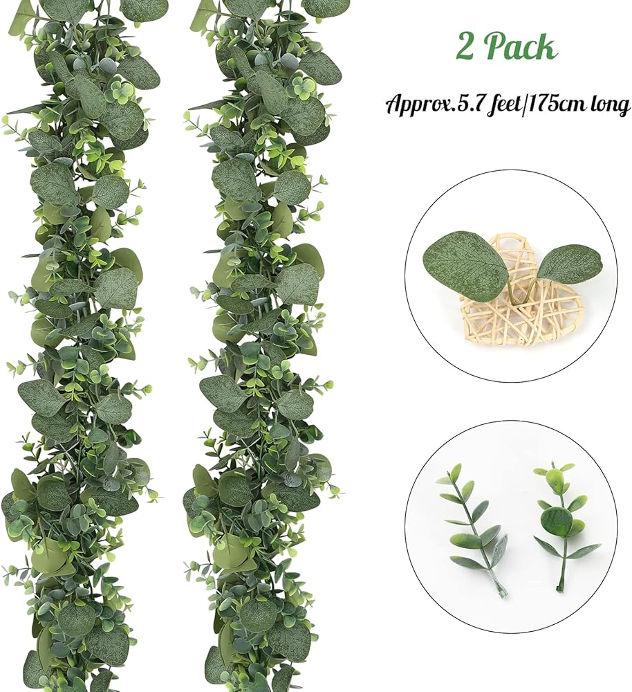 【Package & Size】: Package includes 2 PCS Artificial Mixed Eucalyptus Leaves Garlands. The length of 1 piece is 175cm/5.7ft long.