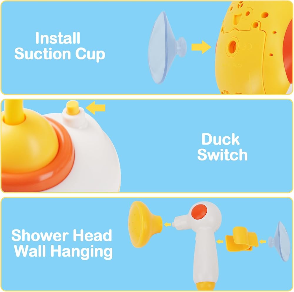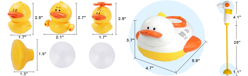 WATERPROOF DESIGN: With its waterproof construction, this baby duck toys offers excellent durability and reliability during water play. The bath shower head sprayer can be easily used in the bathtub or pool without any risk of damage caused by water exposure.