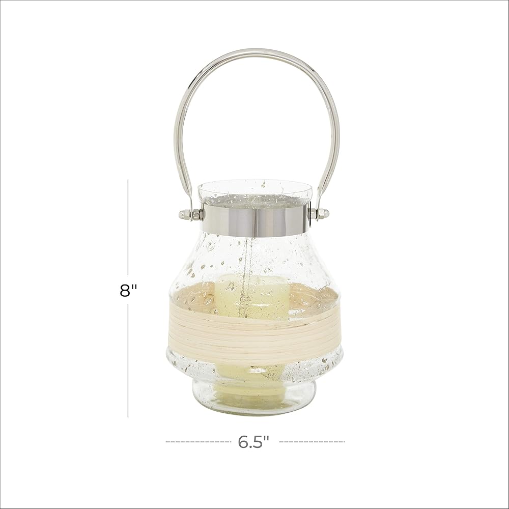 Delight your guests and make any occasion extra special by adding a lighted or flameless candle to this lantern. Made with a sturdy base, it is perfect for creating an elegant atmosphere at your table top or mantel. Apart from being a candle holder, it can also serve as a teabag container in the kitchen or a key holder and change container by the entryway. Designed with felt or rubber stoppers at the base that prevent scratching furniture and table tops, as well as sliding around. Can hold one pillar candle, not included. This item ships in 1 carton. Please note that this item is for decorative use only. Set the scene and light some candles to create warmth and joy in your living space. Glass candle lantern makes a great gift for any occasion. Suitable for indoor use only. This item ships fully assembled in one piece. Made in India. This is a single clear colored lantern candle holder. Contemporary style.