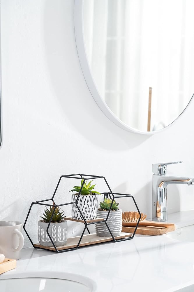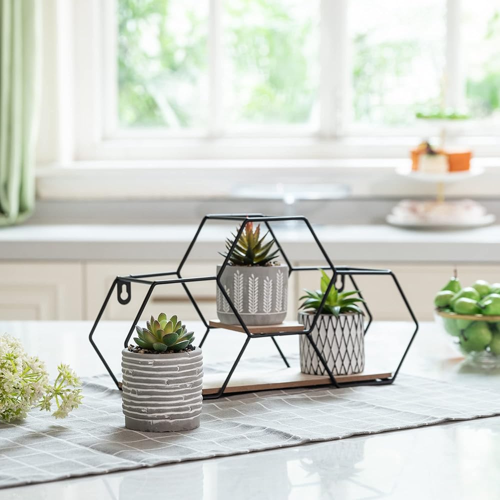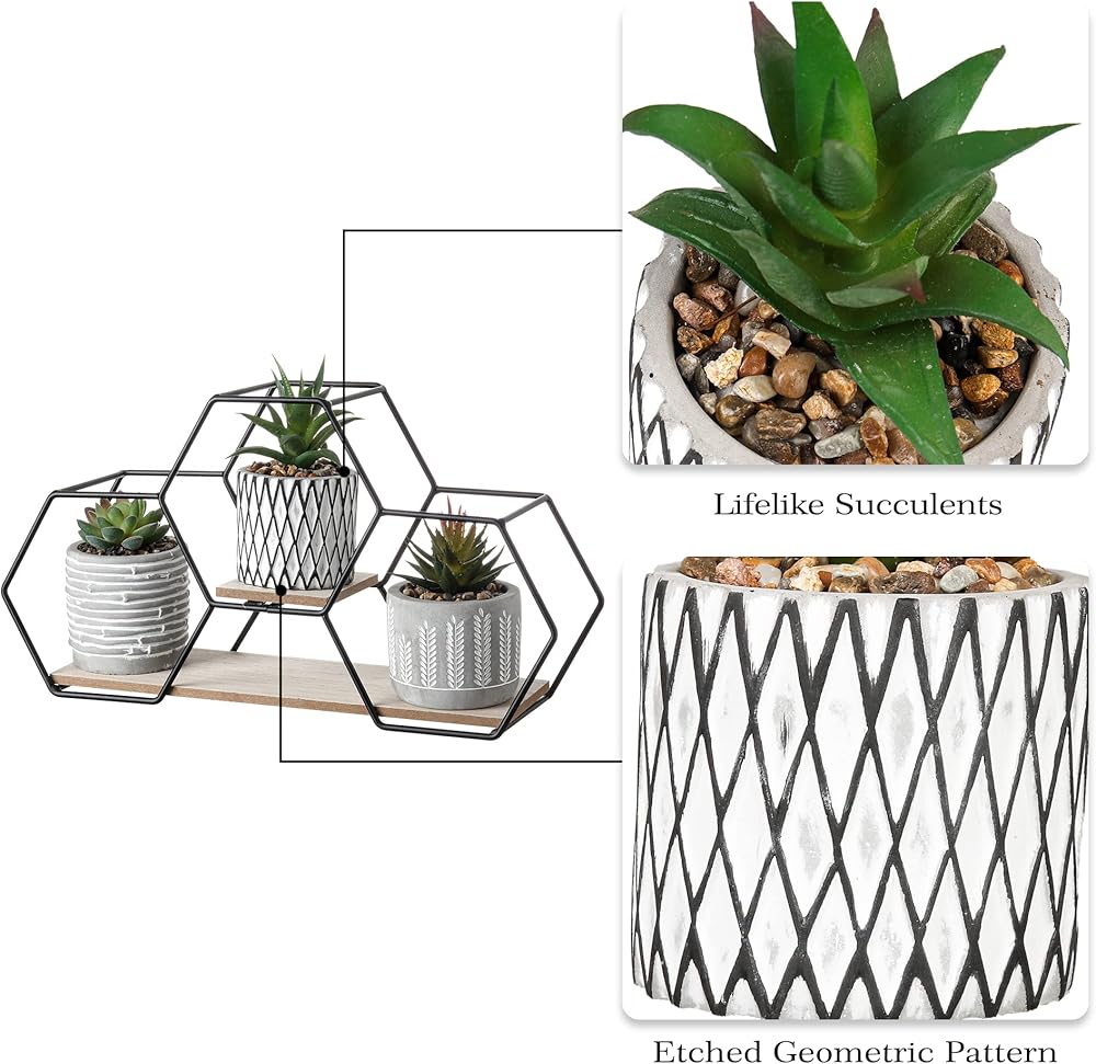 TERESA'S COLLECTIONS Modern Artificial Potted Plants for Home Decor, Indoor Fake Plant, Boho Decor with Metal Shelf, Faux Succulents for Shelf,Table,Office,Gifts for Mom, 6.7"-Classroom Decor Set of 3