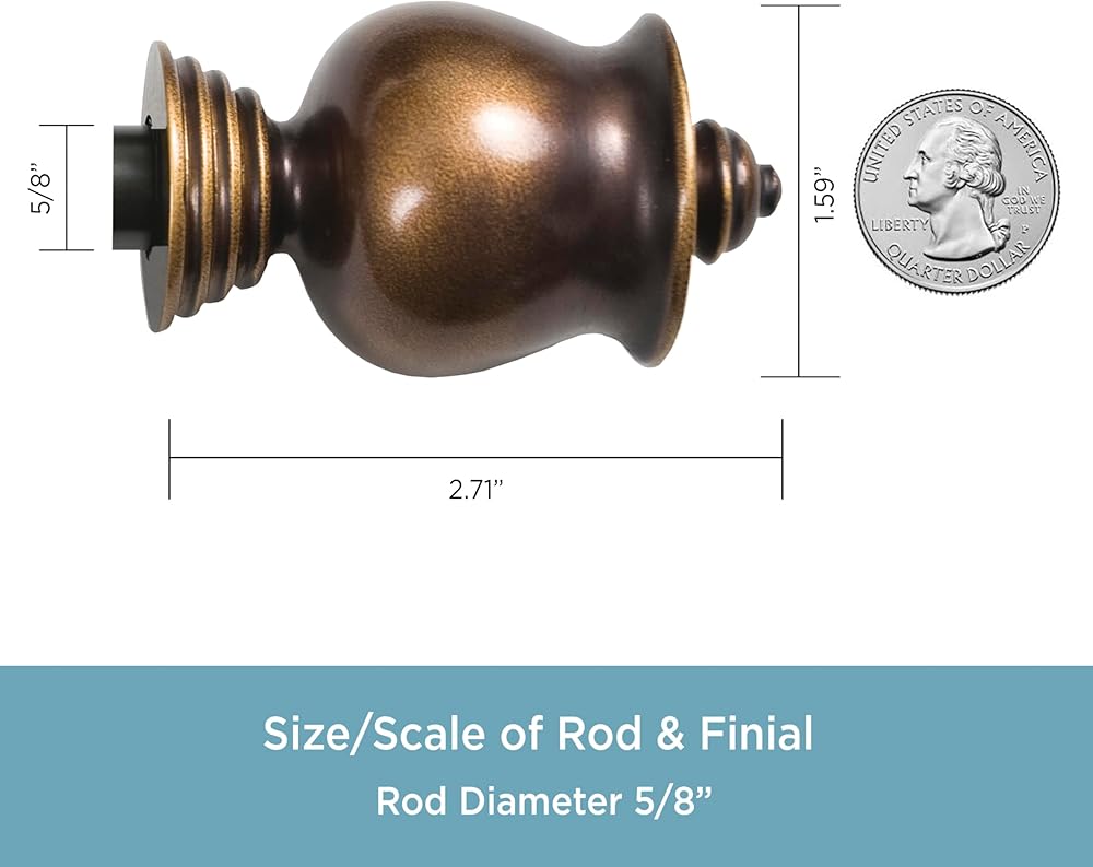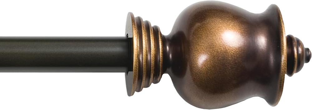 Complement your window treatments with the Parker Curtain Rod by Kenney. This 5/8" diameter metal rod has a dark brown finish with matching resin oil rubbed bronze decorative finials. The telescoping rod adjusts to fit your window and projects 3 inches from the wall. The Parker Curtain Rod is recommended for light and medium weight curtains. Great for back tab, pocket and tab top curtains. This versatile curtain rod is ideal for living rooms, bedrooms, dining rooms and kitchens. Mounting brackets, hardware and instructions are included.