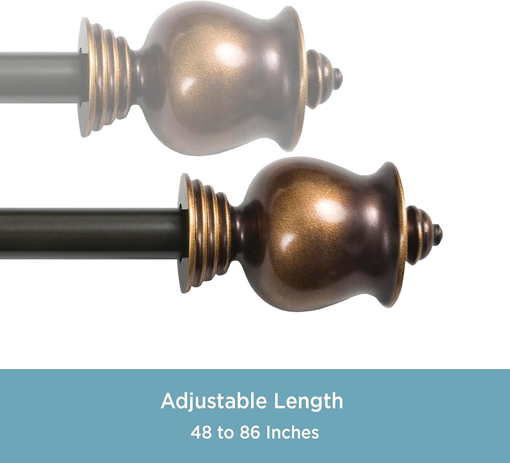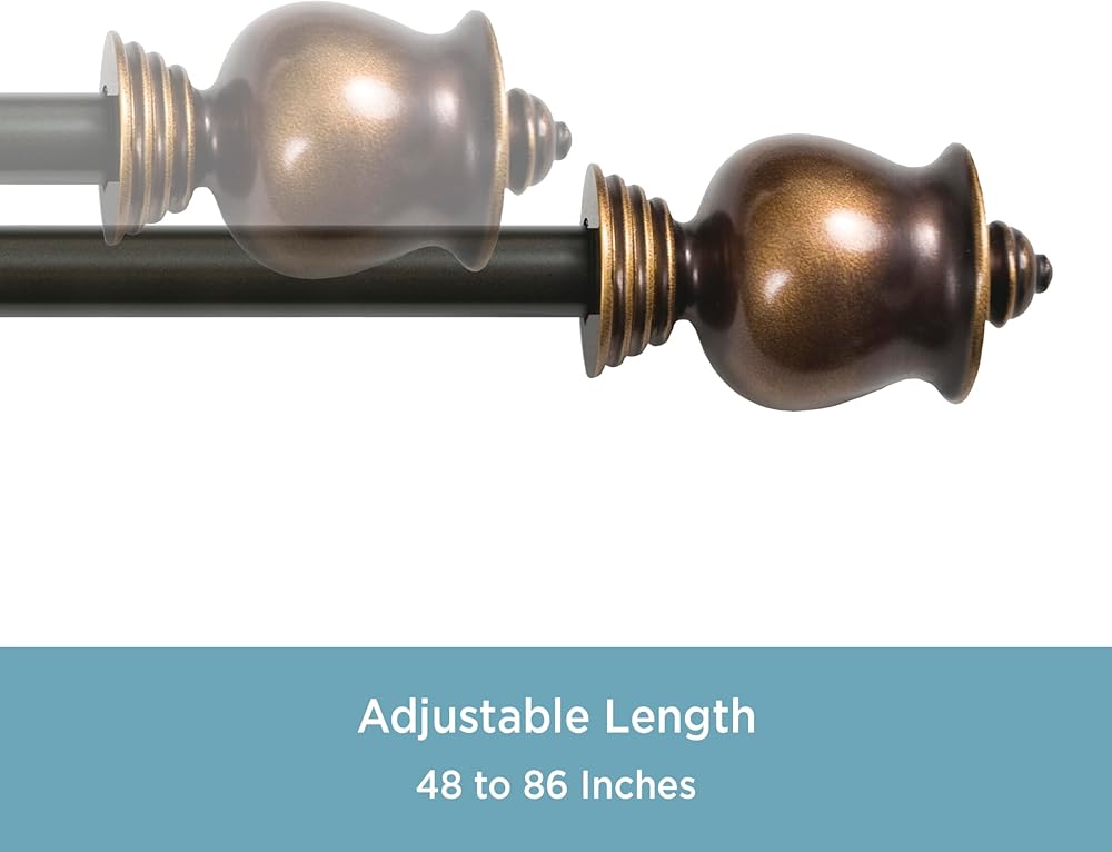 5/8-Inch Diameter Decorative Curtain Rod adjusts from 48 to 86 Inches